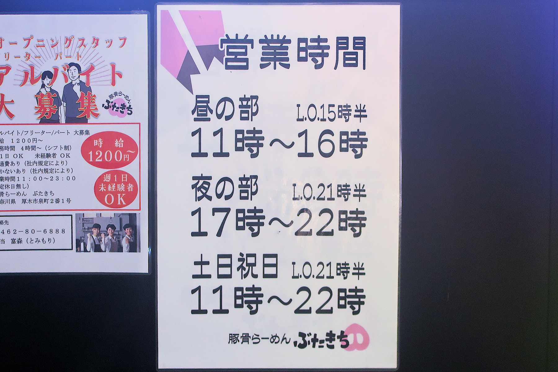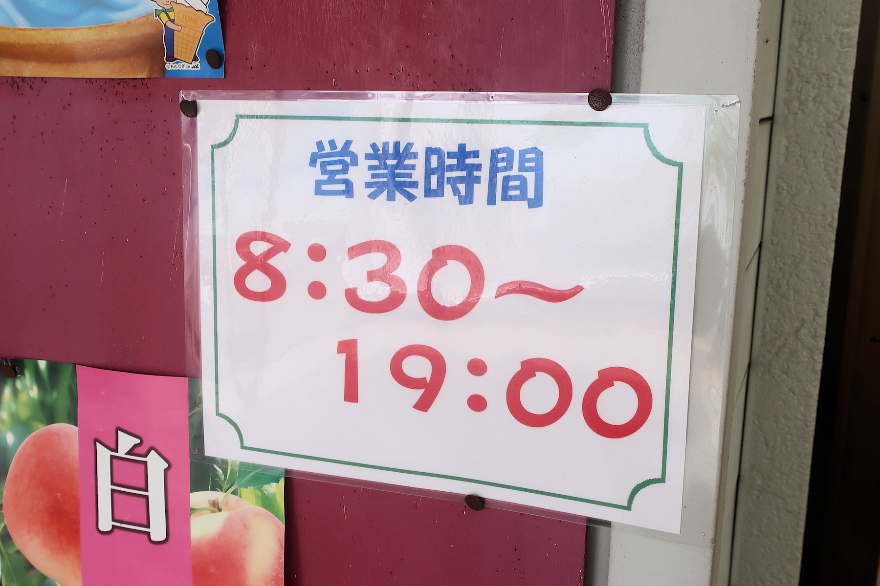 ガラス戸に営業時間やメニューが書かれていますが、ガラス戸向きのお客さんがいて、撮影不可。