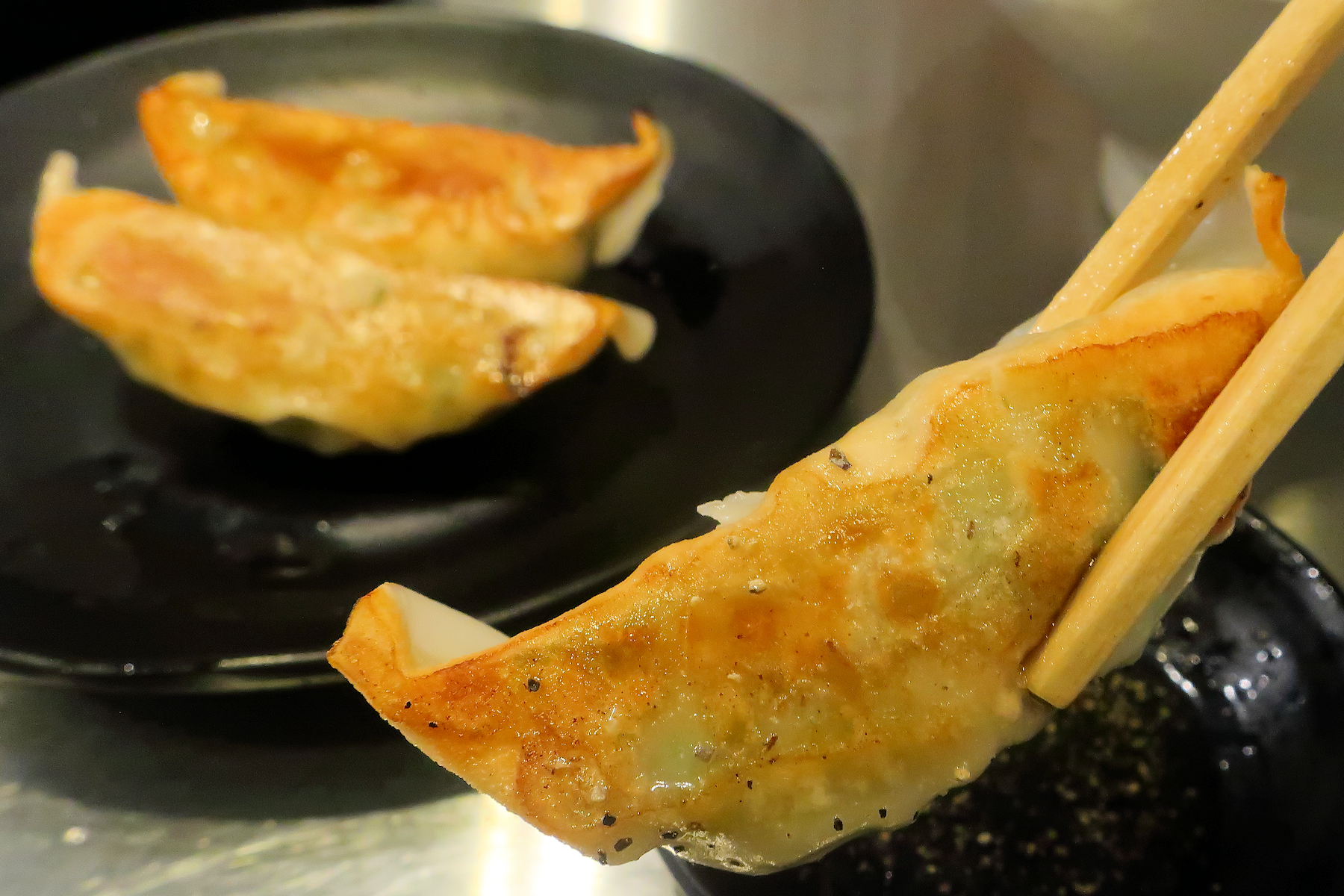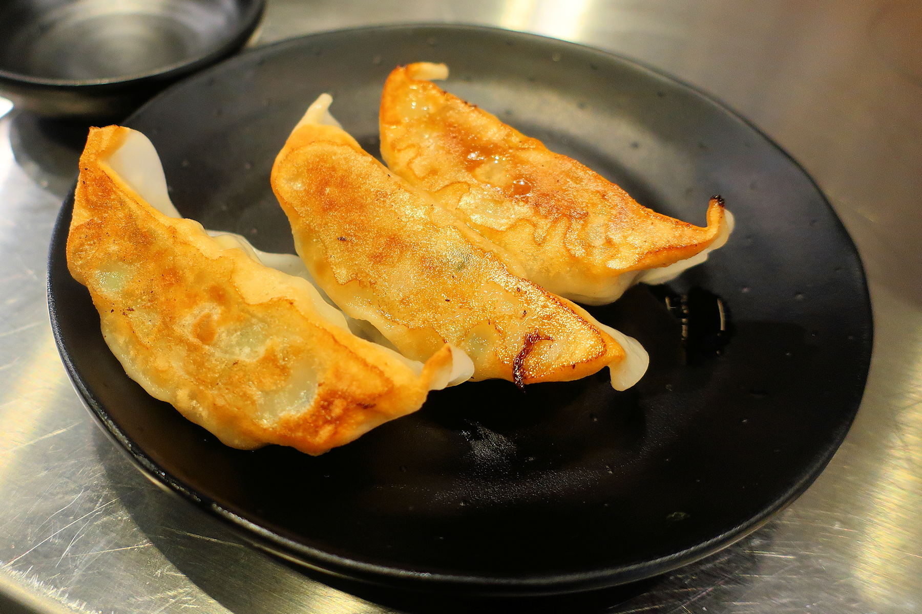 卓上には、中濃ソース、なましょうゆ、辣油、酢、醤油、ブラックペッパー、ニンニク、一味唐からし。