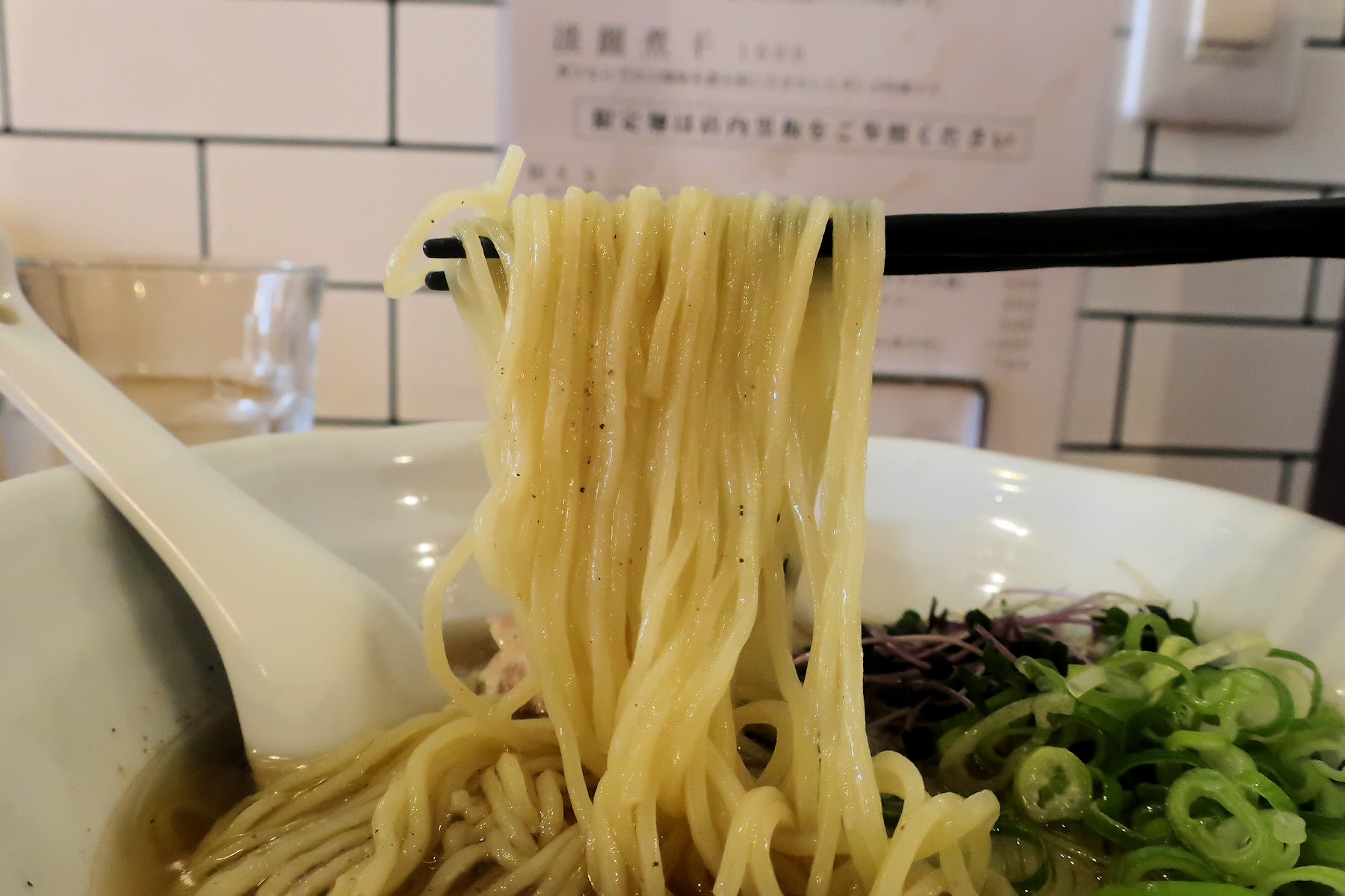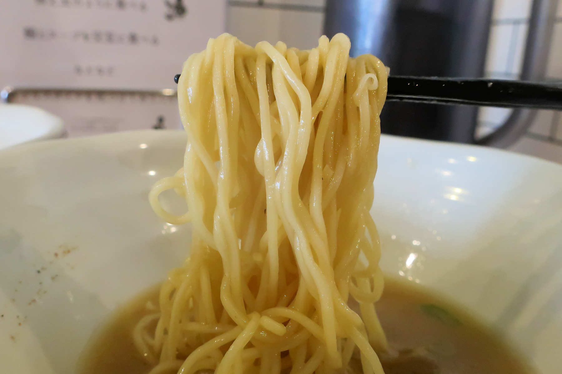スープは豚骨100%とのことで、鶏ガラや背脂は使っていないのだろうか。