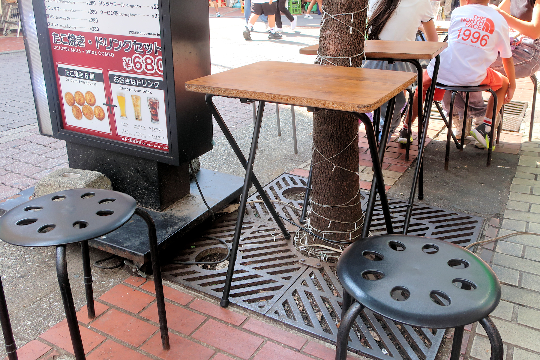 店先には2人掛けが5卓、、お客さんが自由に再配置しています。