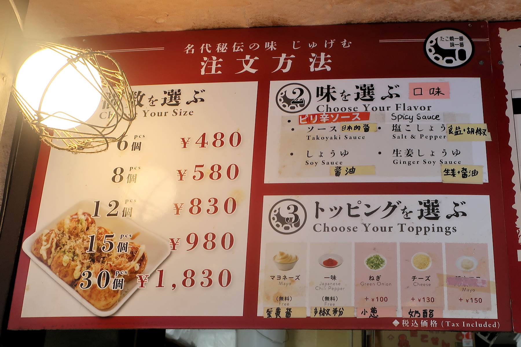 メニューはたこ焼き6個480円、8個580円、12個830円、15個980円、30個1,830円、たこせん330円。