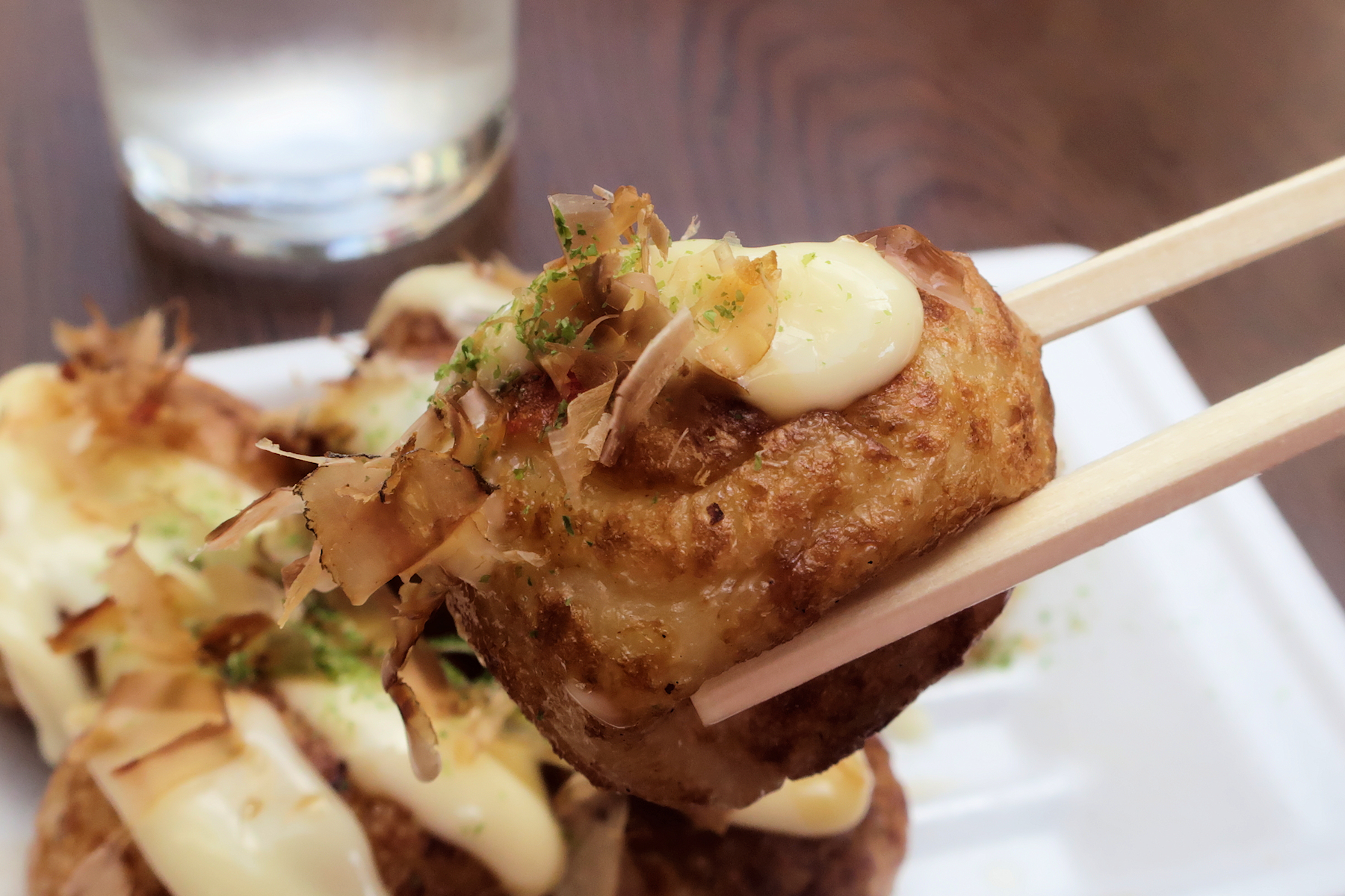ダシは殆ど感じず粉モンの味わい、花鰹とマヨネーズ、ほんのりと青のりがとっても美味しい。