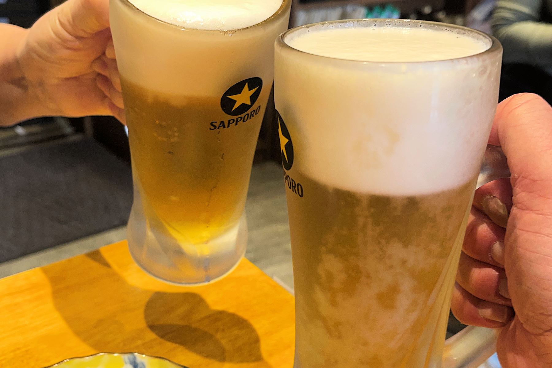 今日は上野で二人お疲れ様会、ビールは昼間に飲んでも夜に飲んでも旨い。