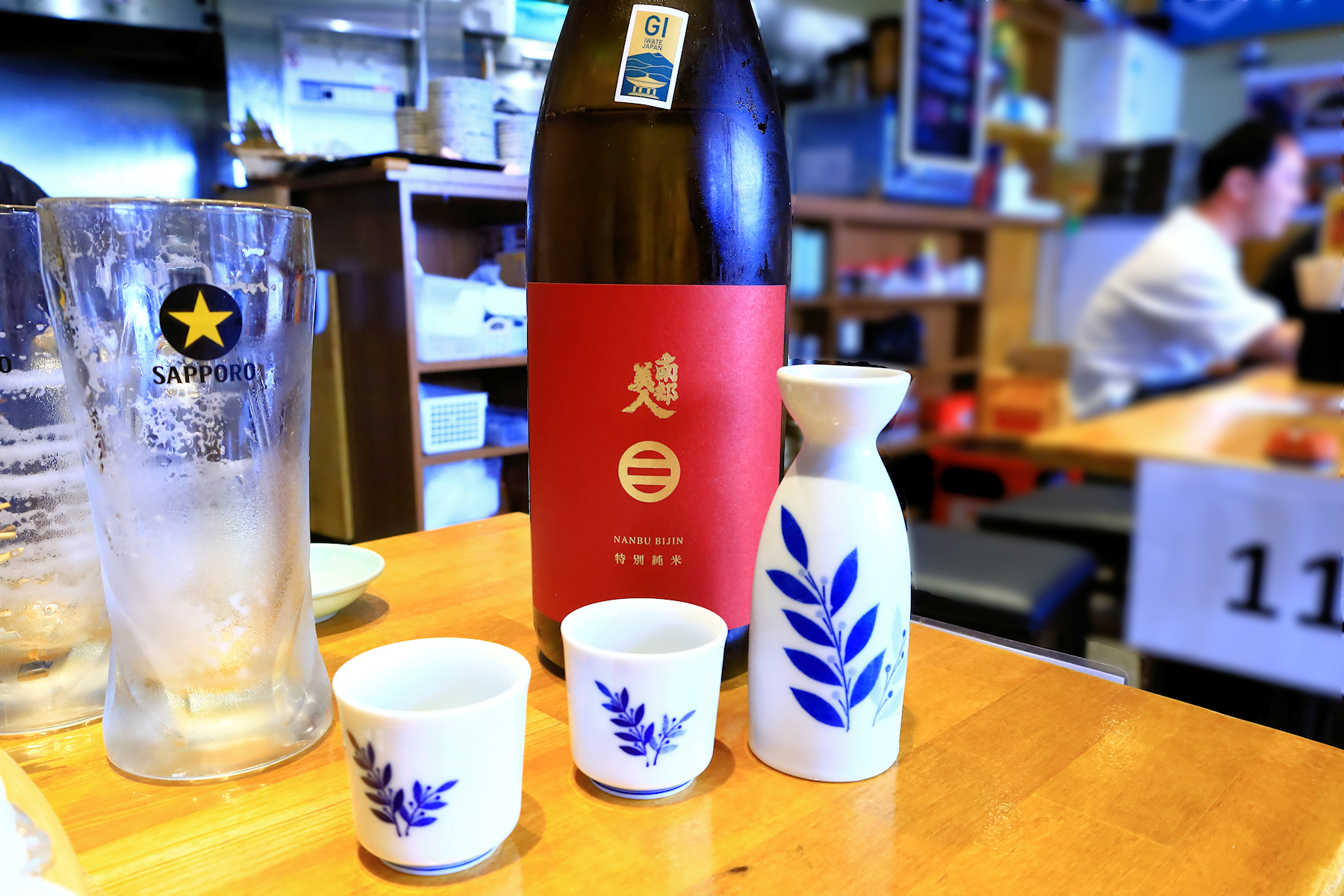 1杯目の日本酒は、岩手の蔵元である南部美人が醸す「南部美人 赤ラベル(なんぶびじん)」特別純米酒 R6BY。