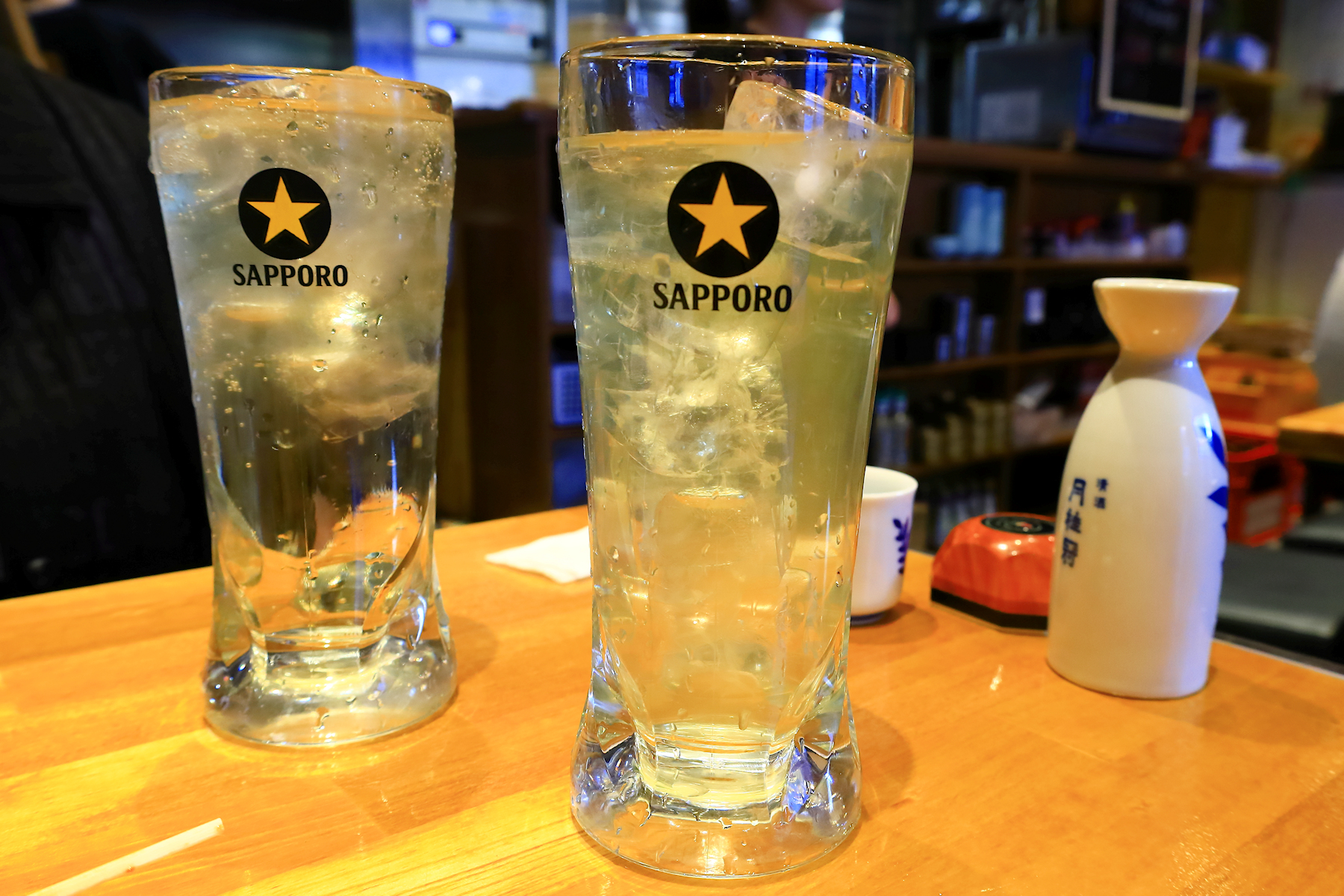 ということで、〆に向けて私は緑茶ハイ400円、友達はりんご酢サワー450円。