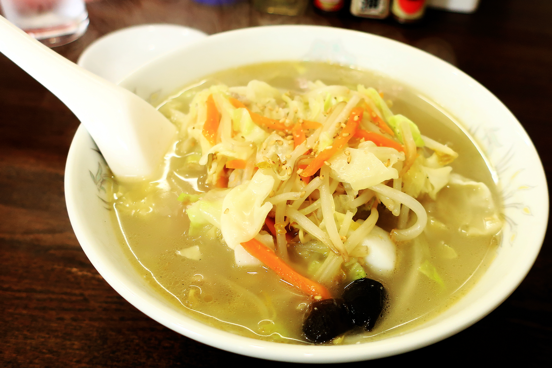 タンメンってお店の数だけ種類がありそうですが、こちらのタンメンには白ゴマが振ってあります。