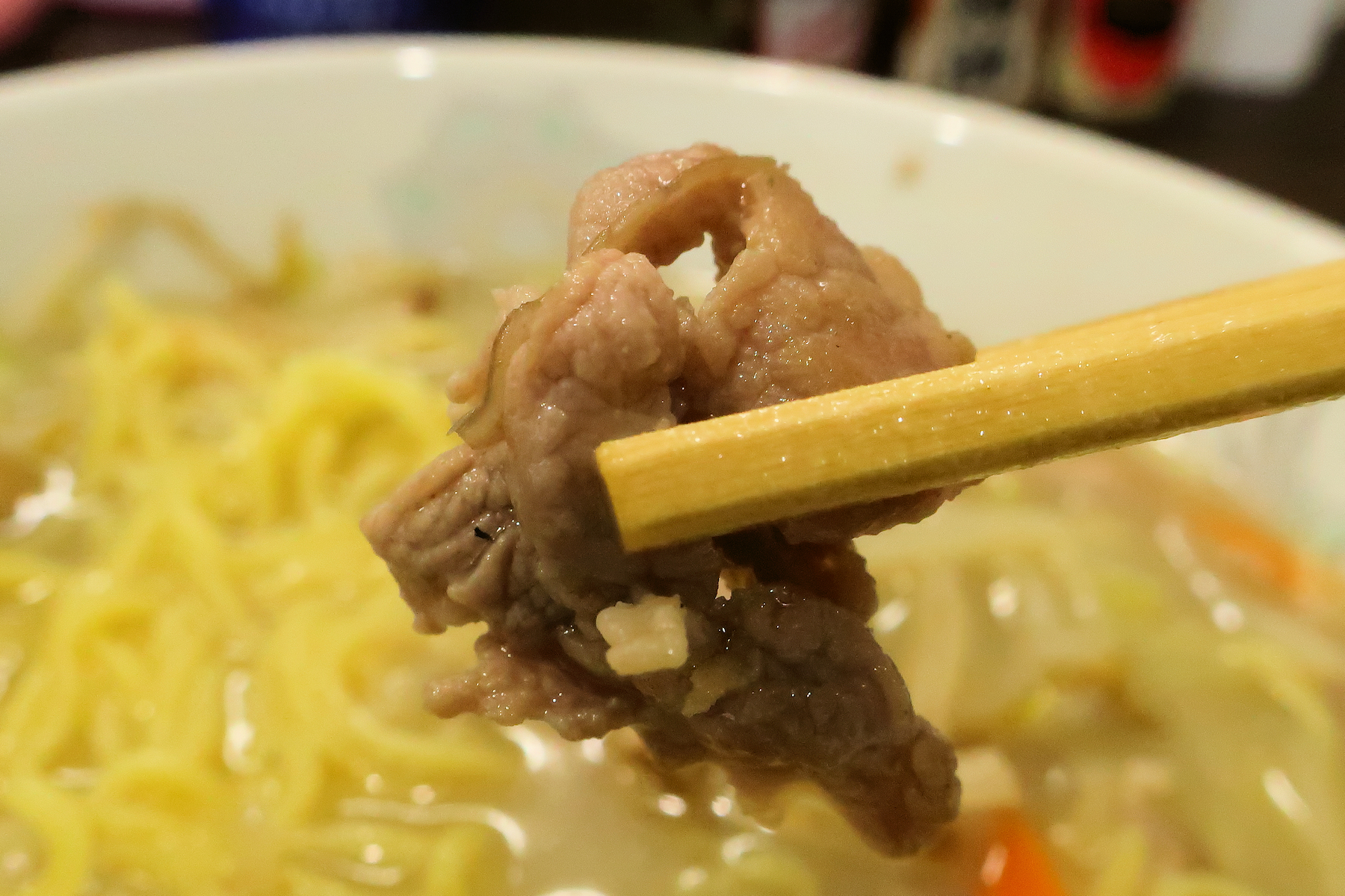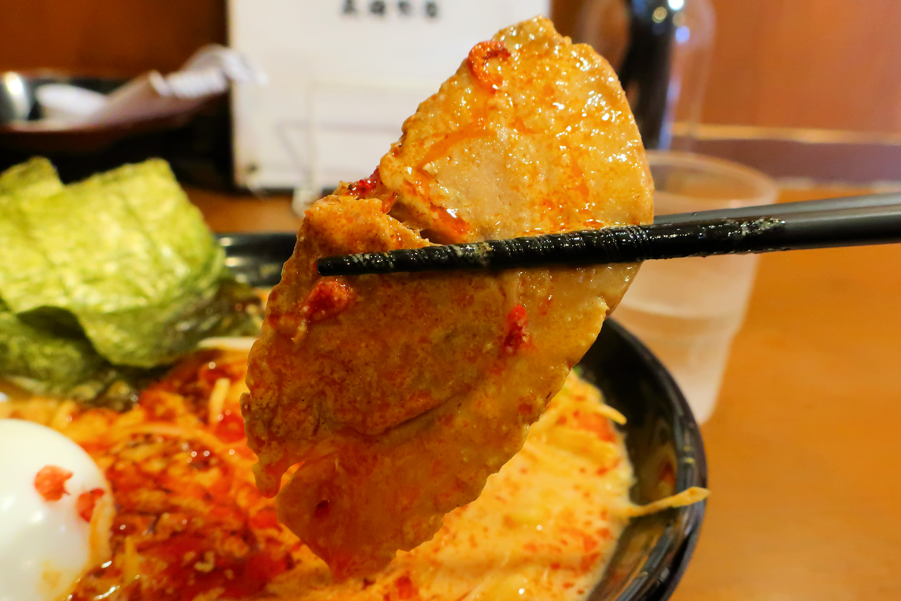 柔らかくて味わい深い豚バラ肉のチャーシュー、濃厚スープに負けない美味しさ。