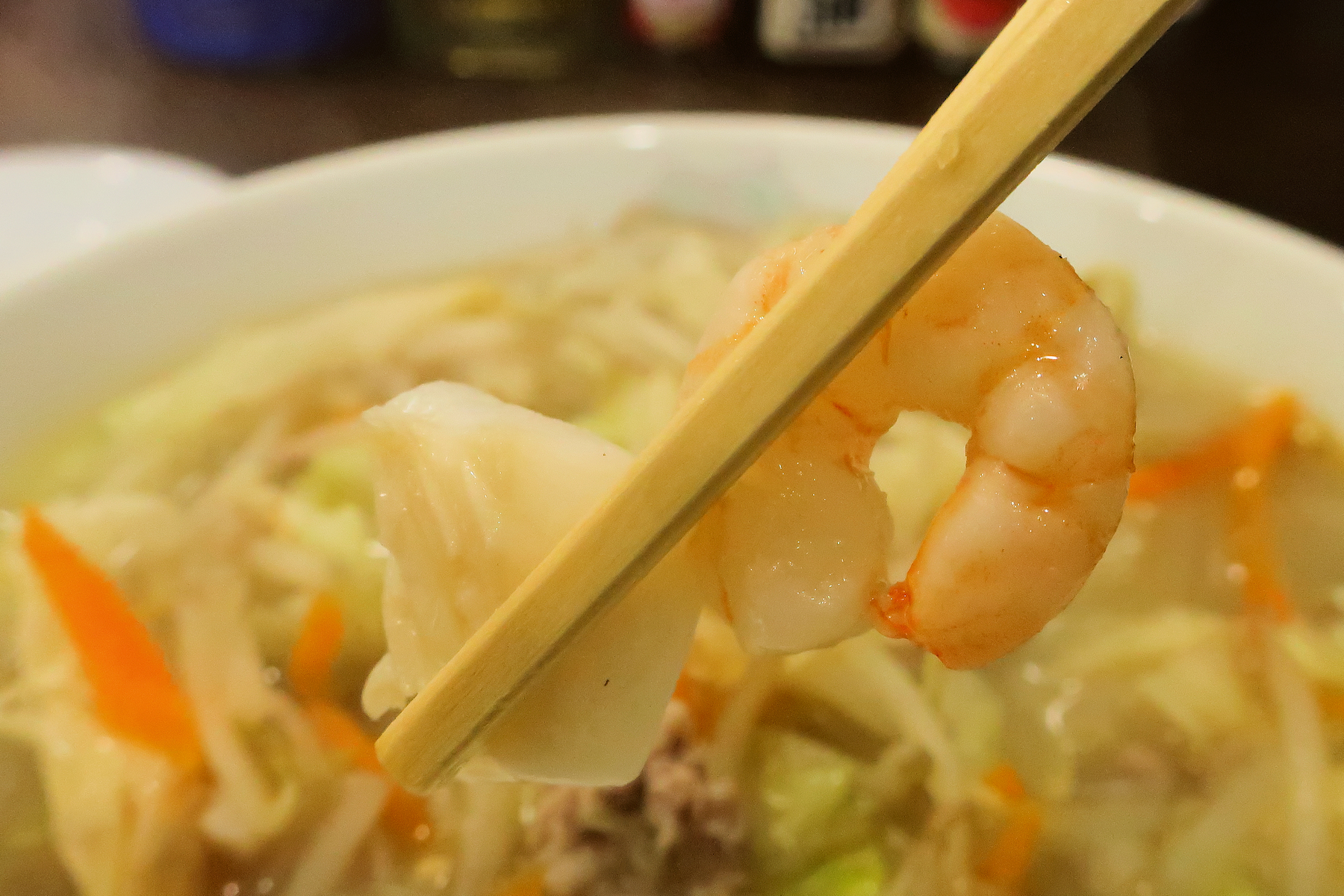 店舗によっては「海鮮」と付ける店もありそうですが、こちらでは「入っている」ことがタンメンなのだろう。