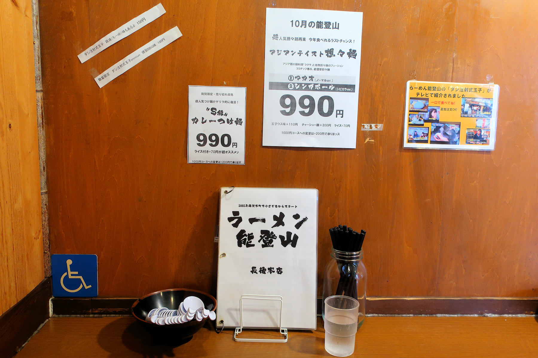 一番奥の席に座って、店内に貼り出されたメニューから口頭注文後会計。