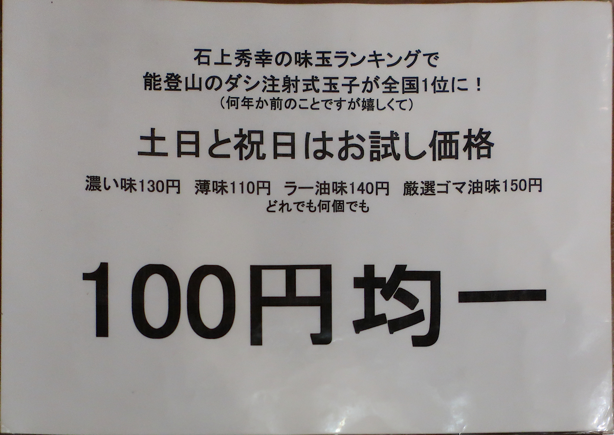 口頭で注文したら、「本日はダシ注射式玉子が100円ですので、いかがでしょうか」と勧められます。