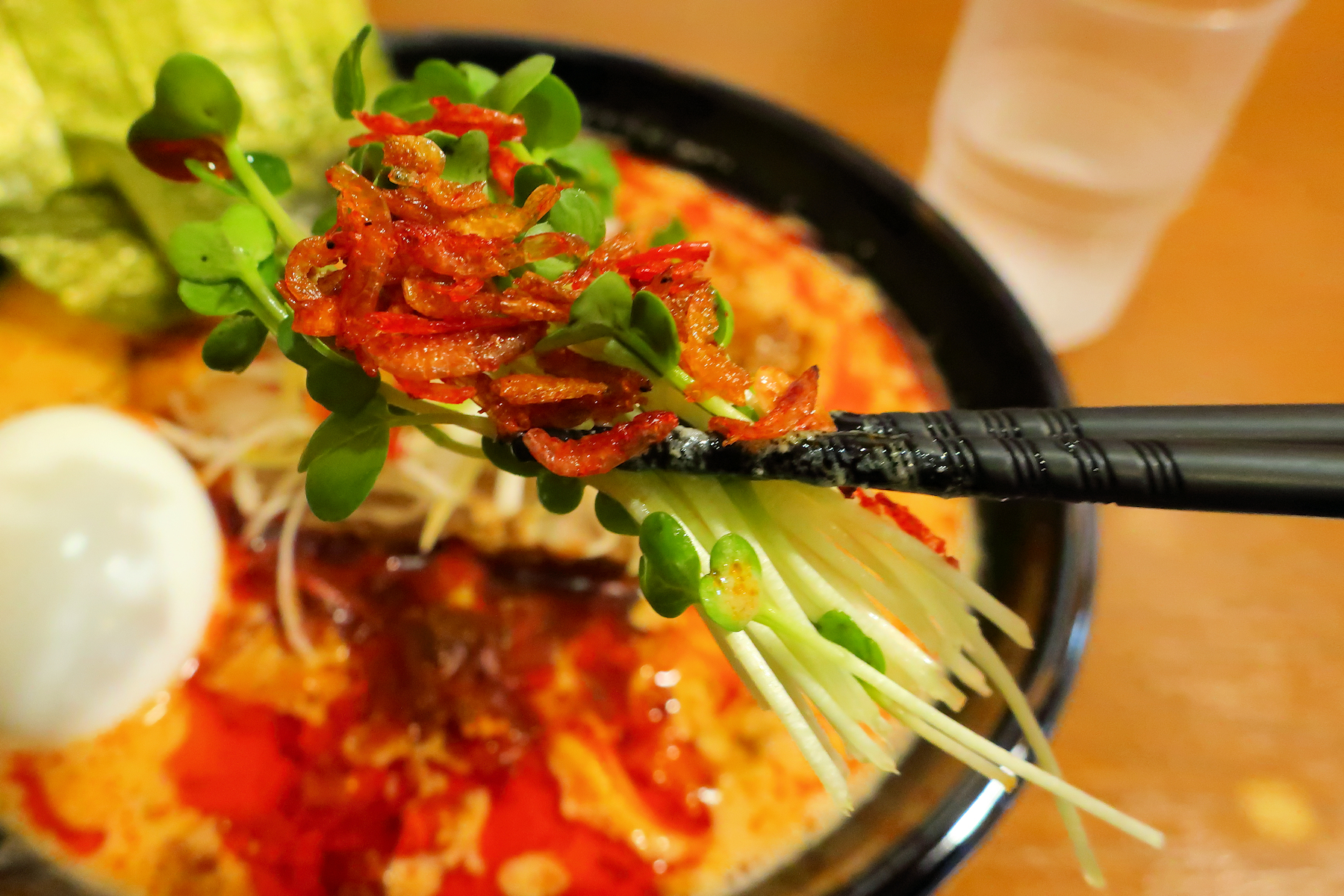 程なくして、私のためだけに調理してくださった、アジアンテイスト担々麺(シンガポール)990円、ダシ注射式玉子は濃い味100円(土日祝特価)、ありがとうございます。