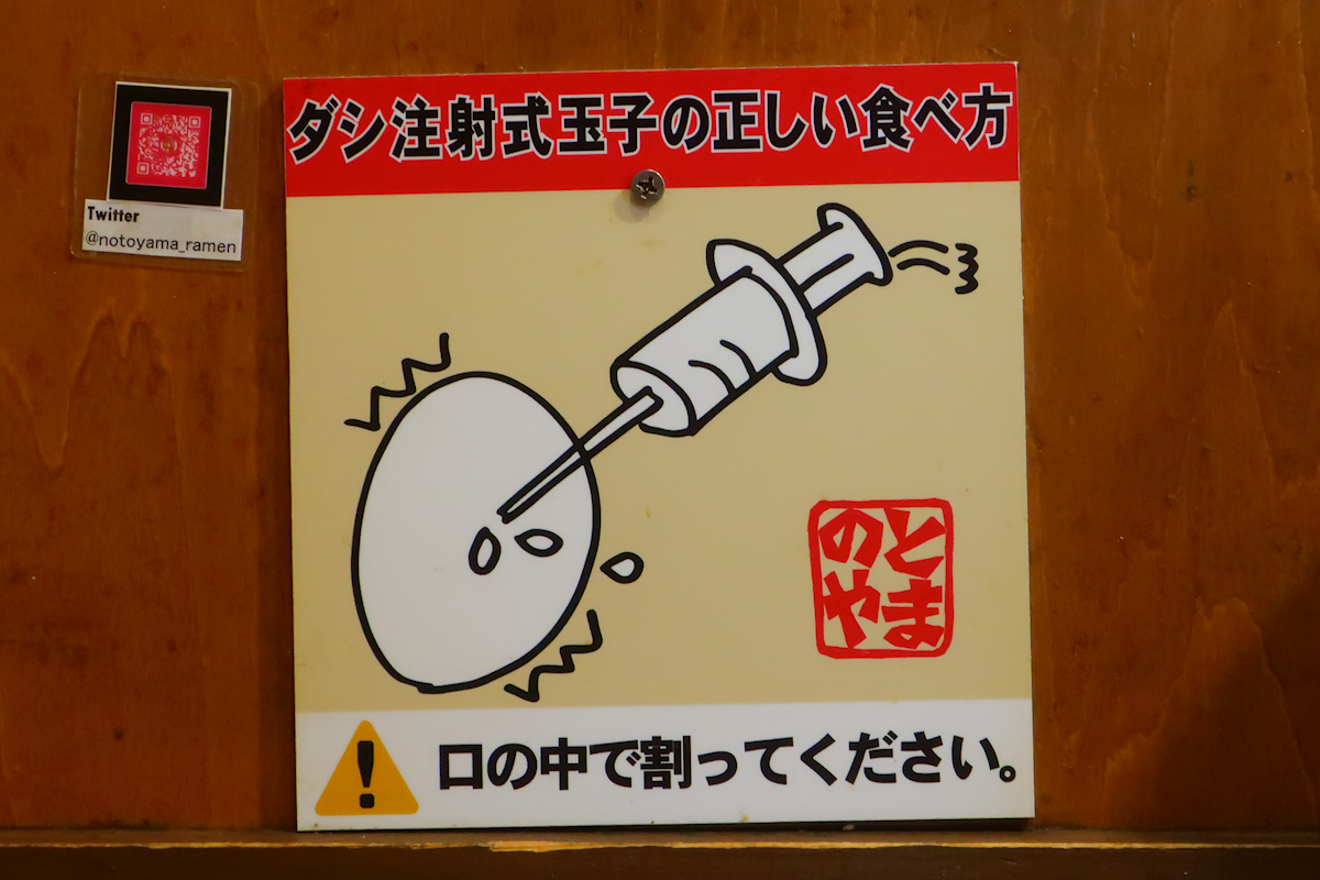 トッピングのダシ注射式玉子はこい味130円、うす味110円、ラー油味140円、厳選ゴマ味150円。