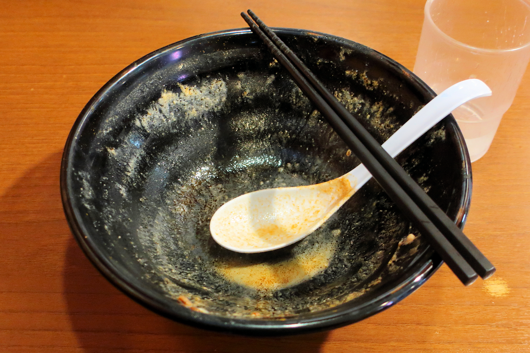 ライスをもらって(購入して)スープを掻き取ろうかと思いつつ、そのままスープを飲みきってしまいます。