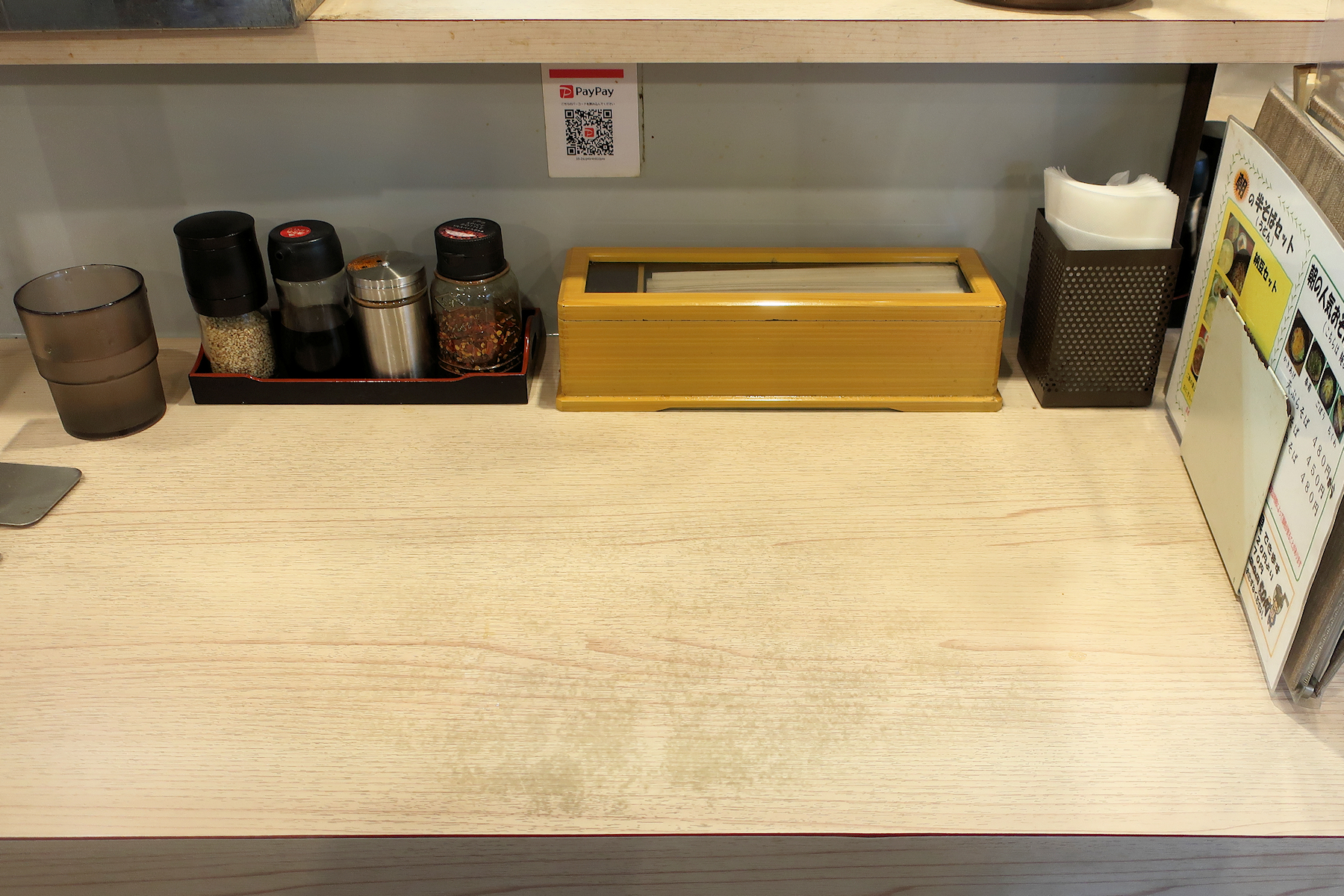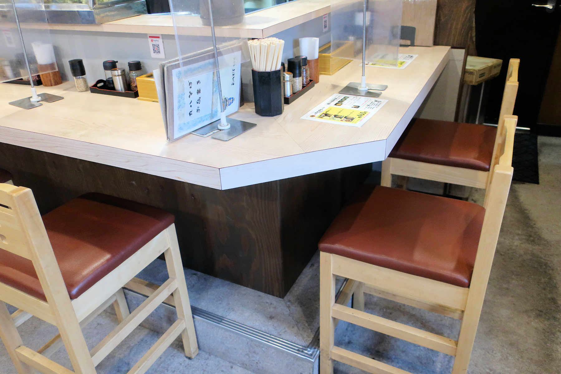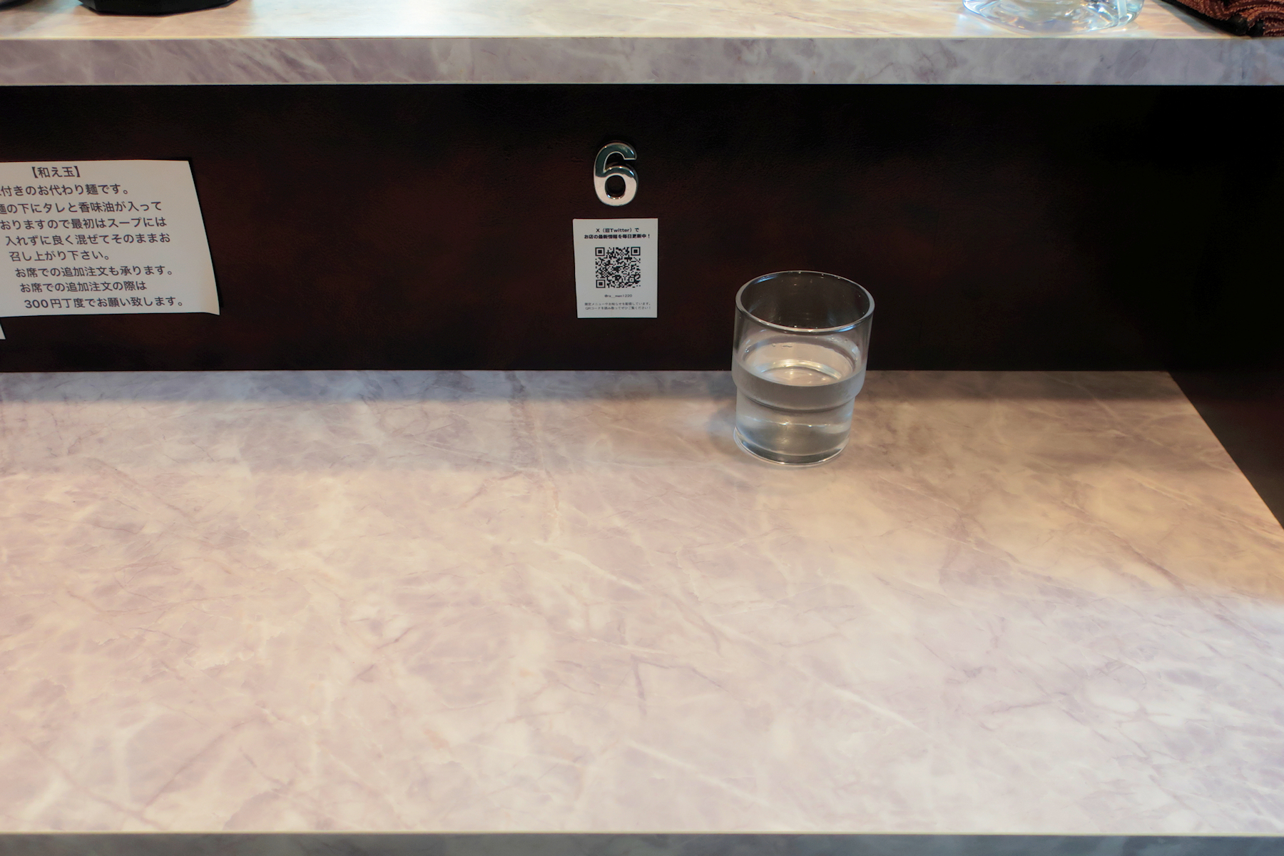 「お願いします」とカウンター台に2枚の食券を置くと、「タイミングでお声がけ下さい」と答えていただけます。
