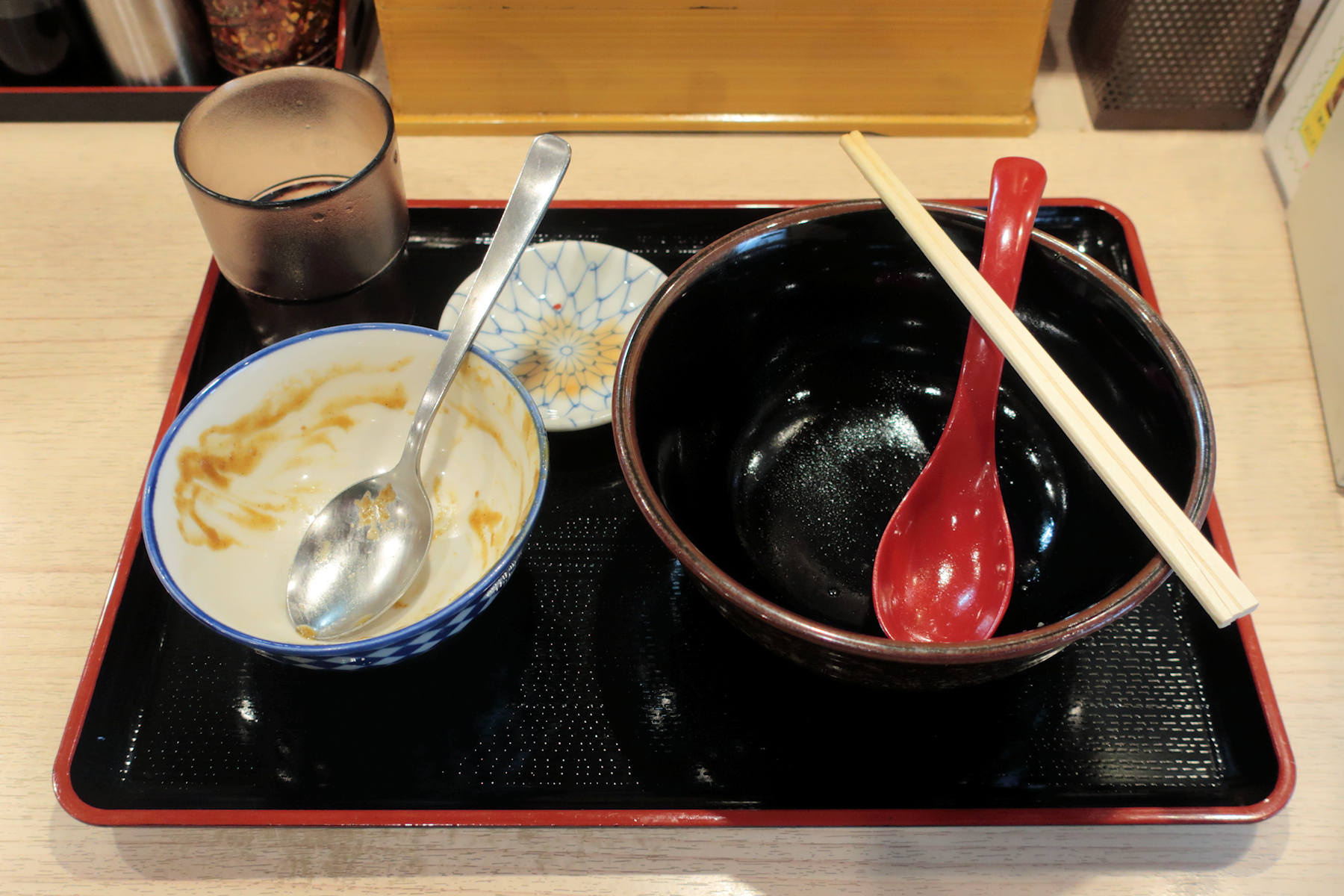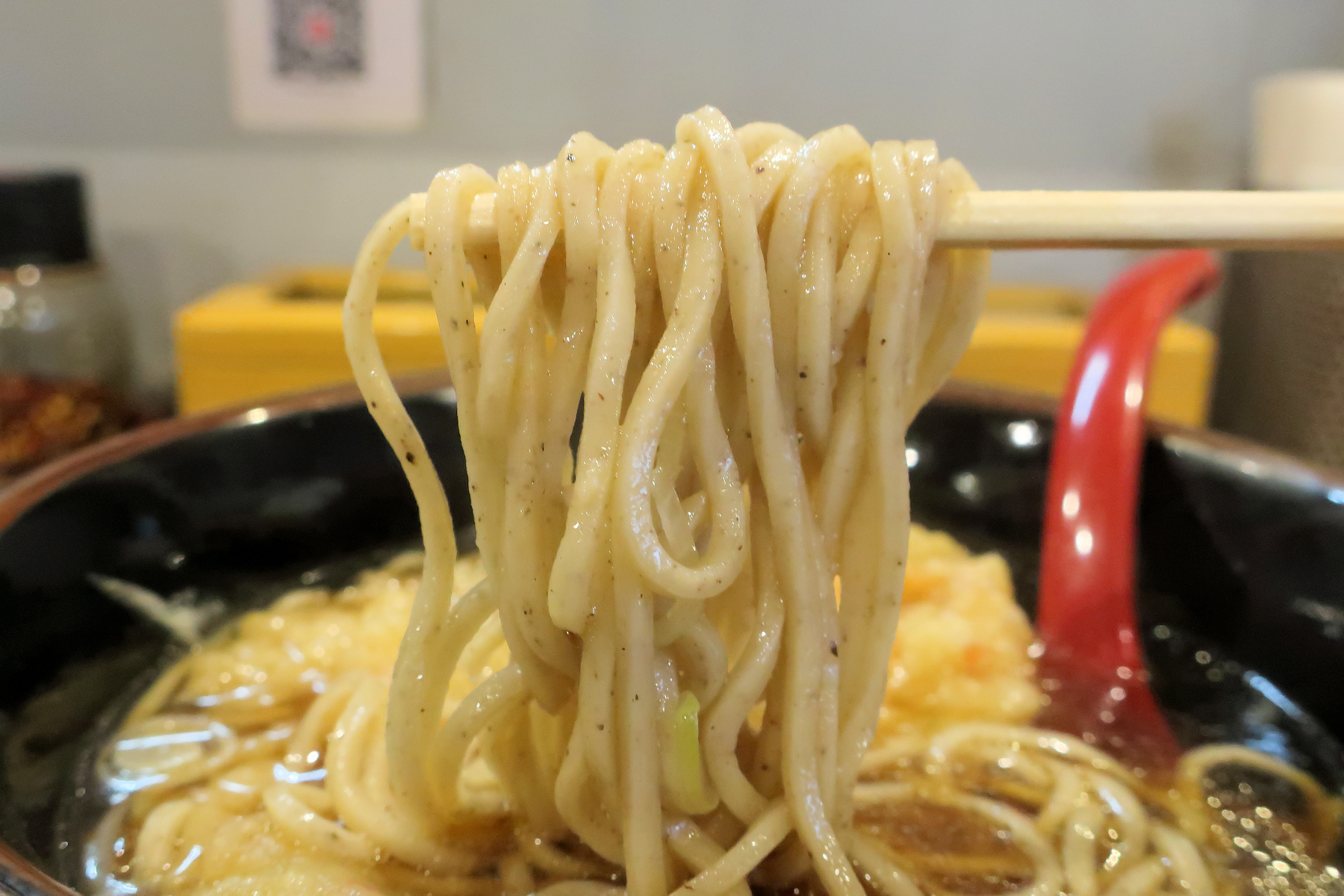 美味しいスープは冷めるとまた違った美味しさになり、和え玉の麺と一気に差を詰めます。