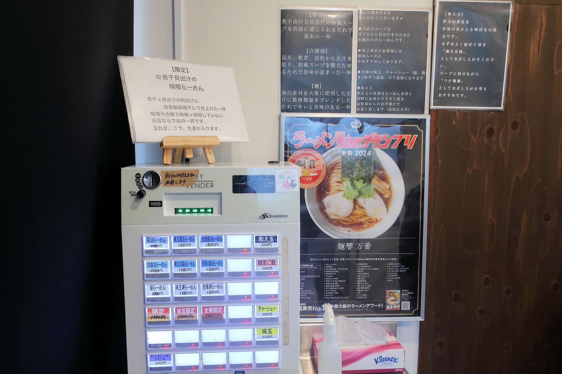 醤油らーめん1,000円、白醤油らーめん1,000円、潮らーめん1,000円、和え玉300円。