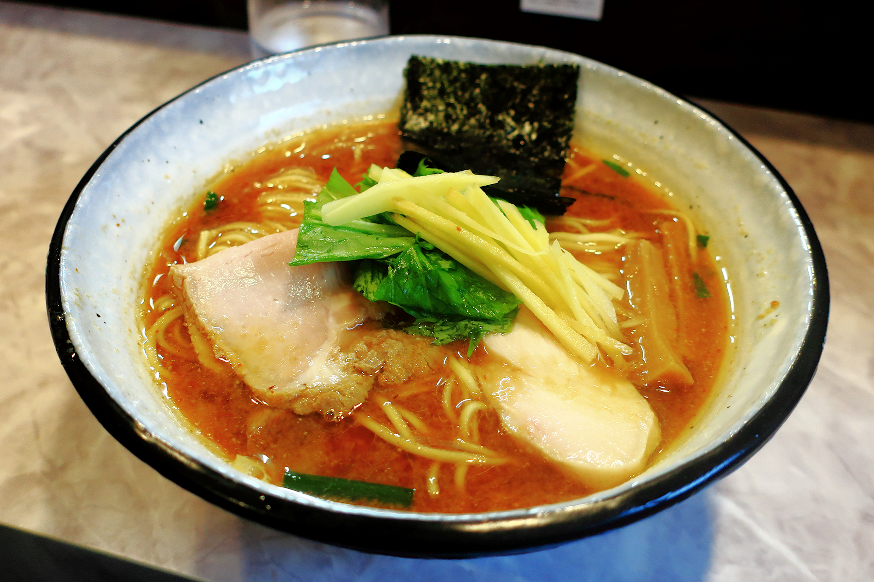 スープは煮干しと貝出汁のベストフレンズ、合わせ味噌のたれをすっきり馴染ませ、店主さんの感性を感じる味わい。