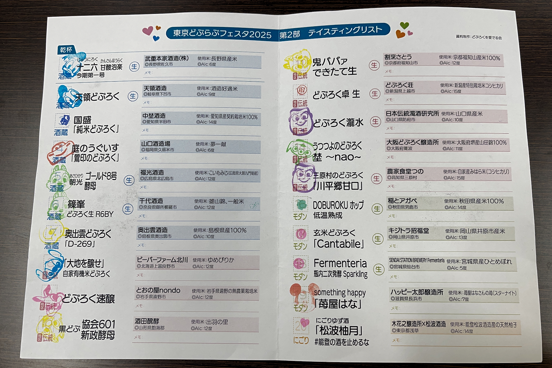 どぶろくをある程度ジャンル分けされているので、順番に飲んでいくと味の違い分かりにくい。