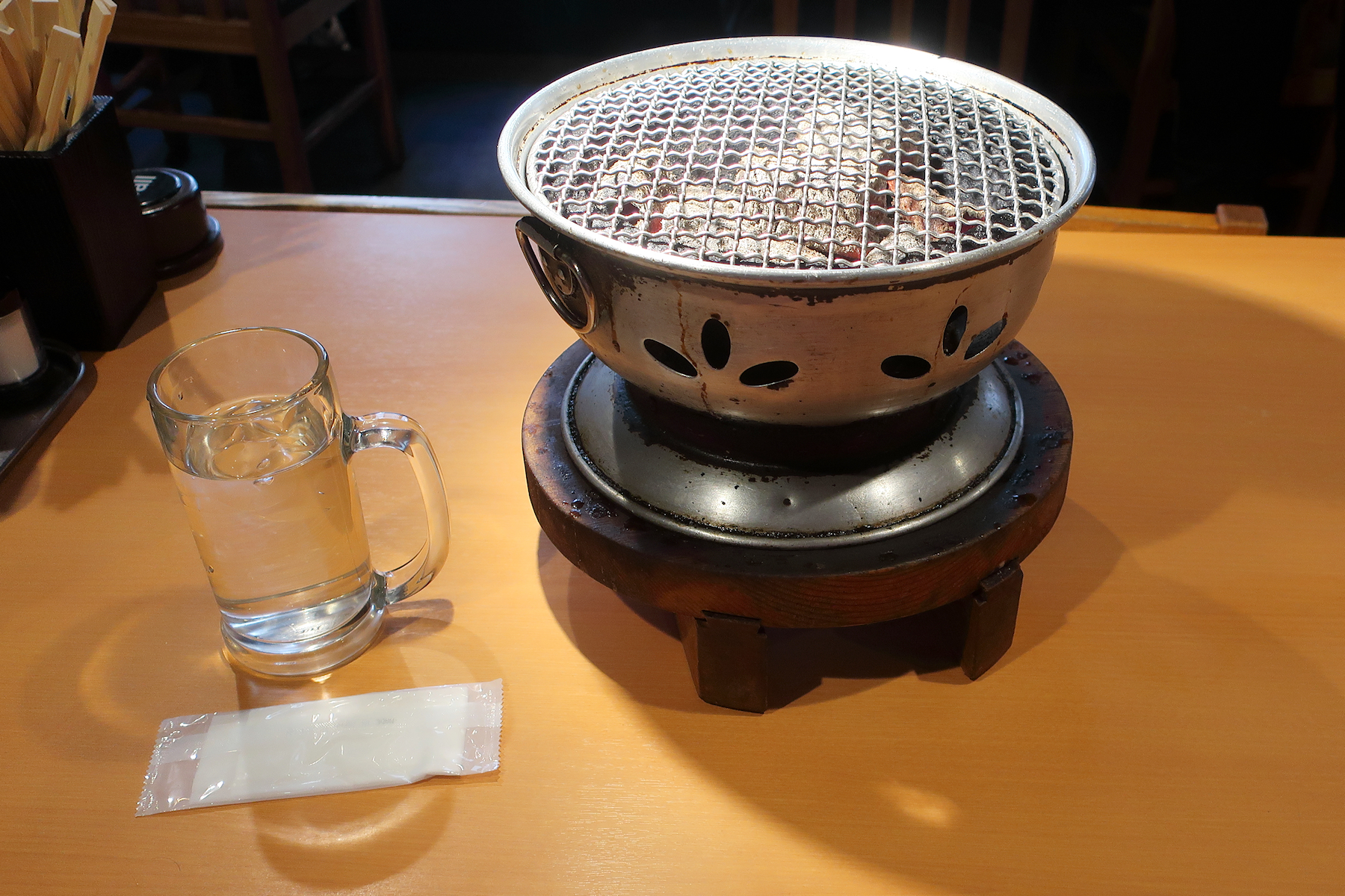 少しすると、火が付いた炭の入った七厘、、じゃなくて水コンロが運ばれてきます。