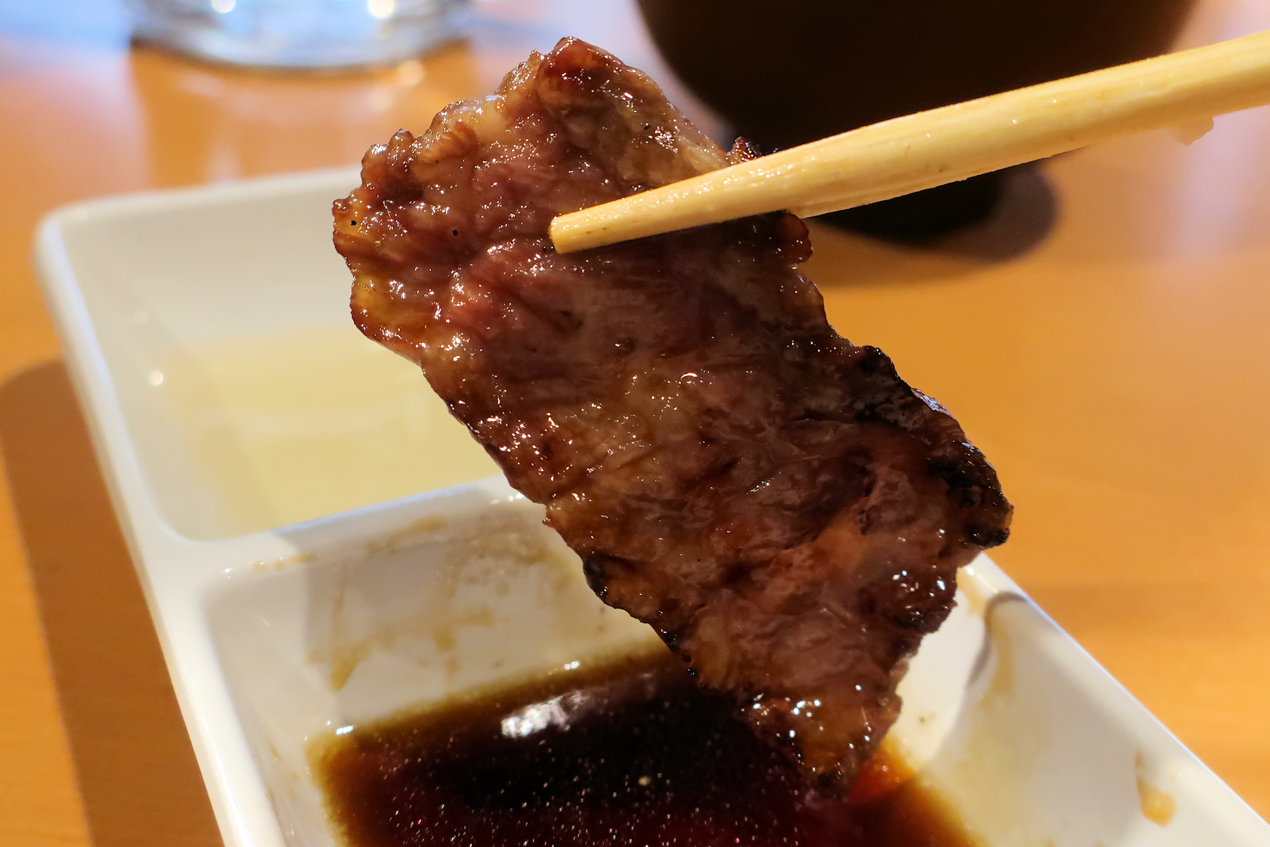 たれは程ほどの甘さで焼肉の美味しさを引き立てる味わい。