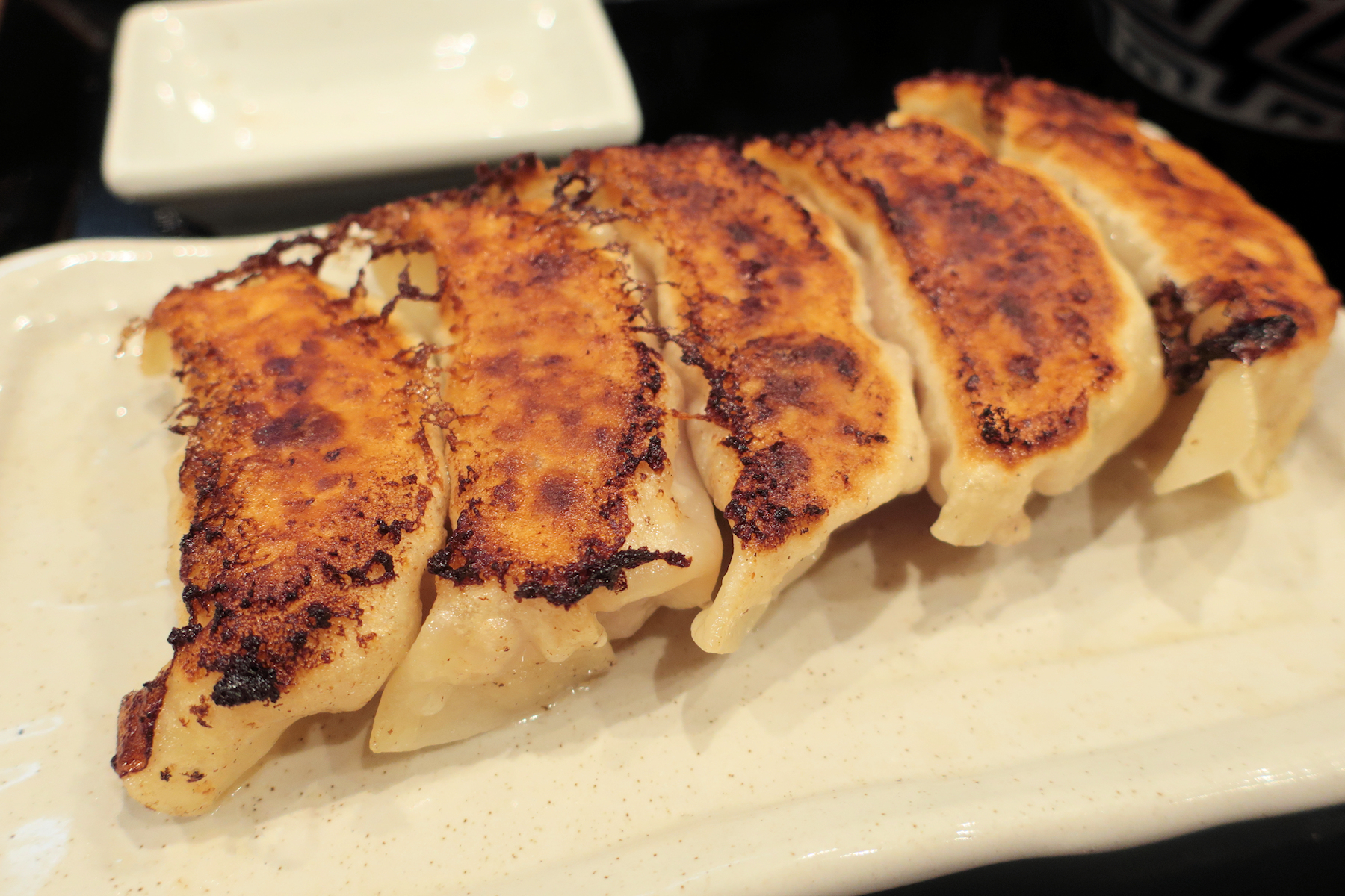 ラーメンを食べている途中で焼き上がってきた、娘娘餃子5個500円。