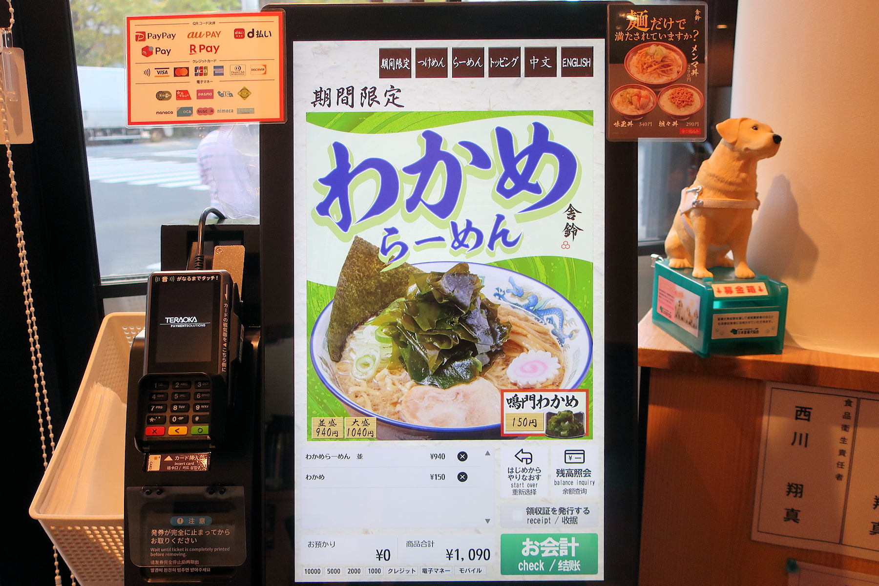 程なくして、わかめらーめん940円、鳴門わかめ150円、ありがとうございます。