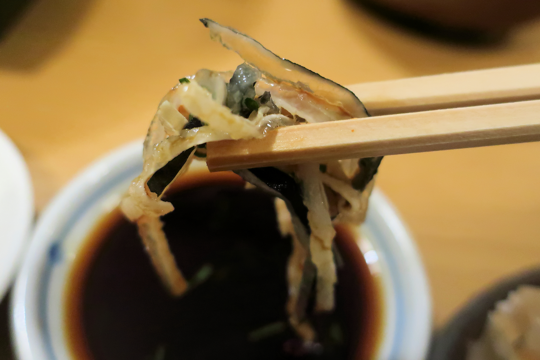 醤油たれとの相性は長年連れ添った夫婦のように息が合っていて、とても美味しい。