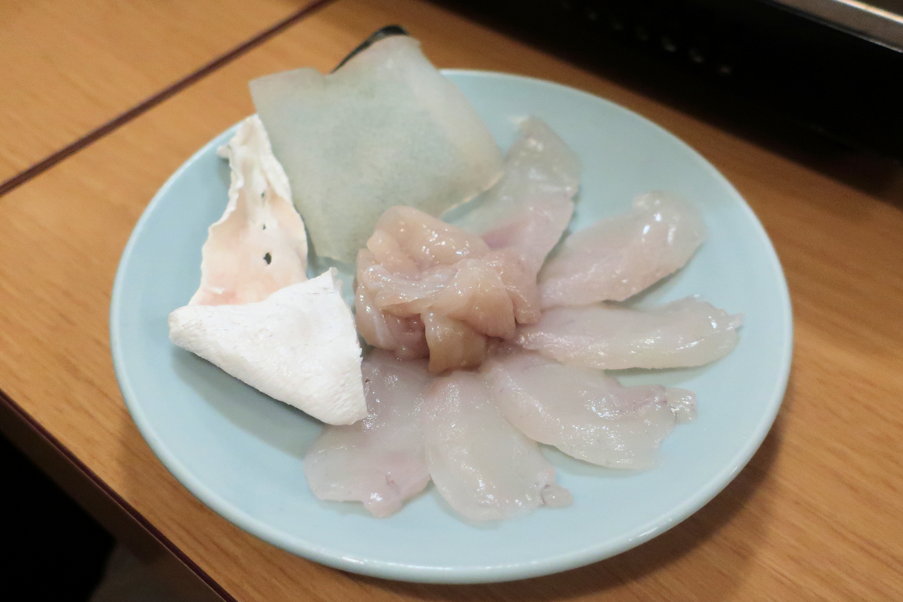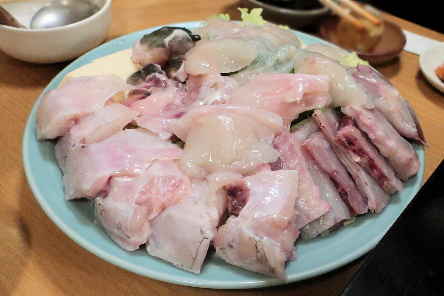 とらふぐちり鍋に投入予定のとらふぐの身と骨。