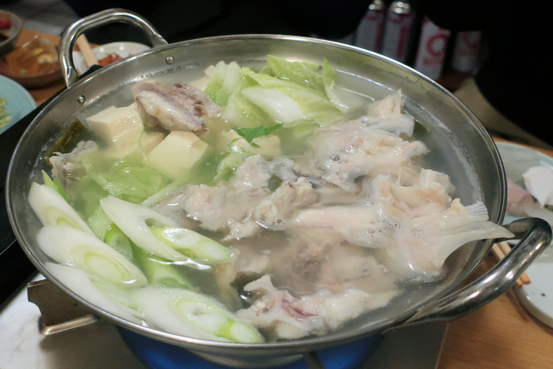 ちり鍋は店員さんが作ってくれます。