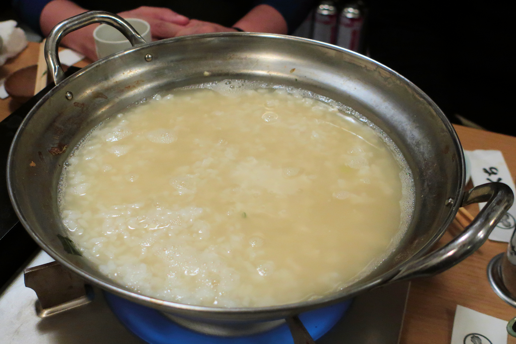 雑炊も店員さんが造ってくれますので、出来上がりをじっと待ちます。