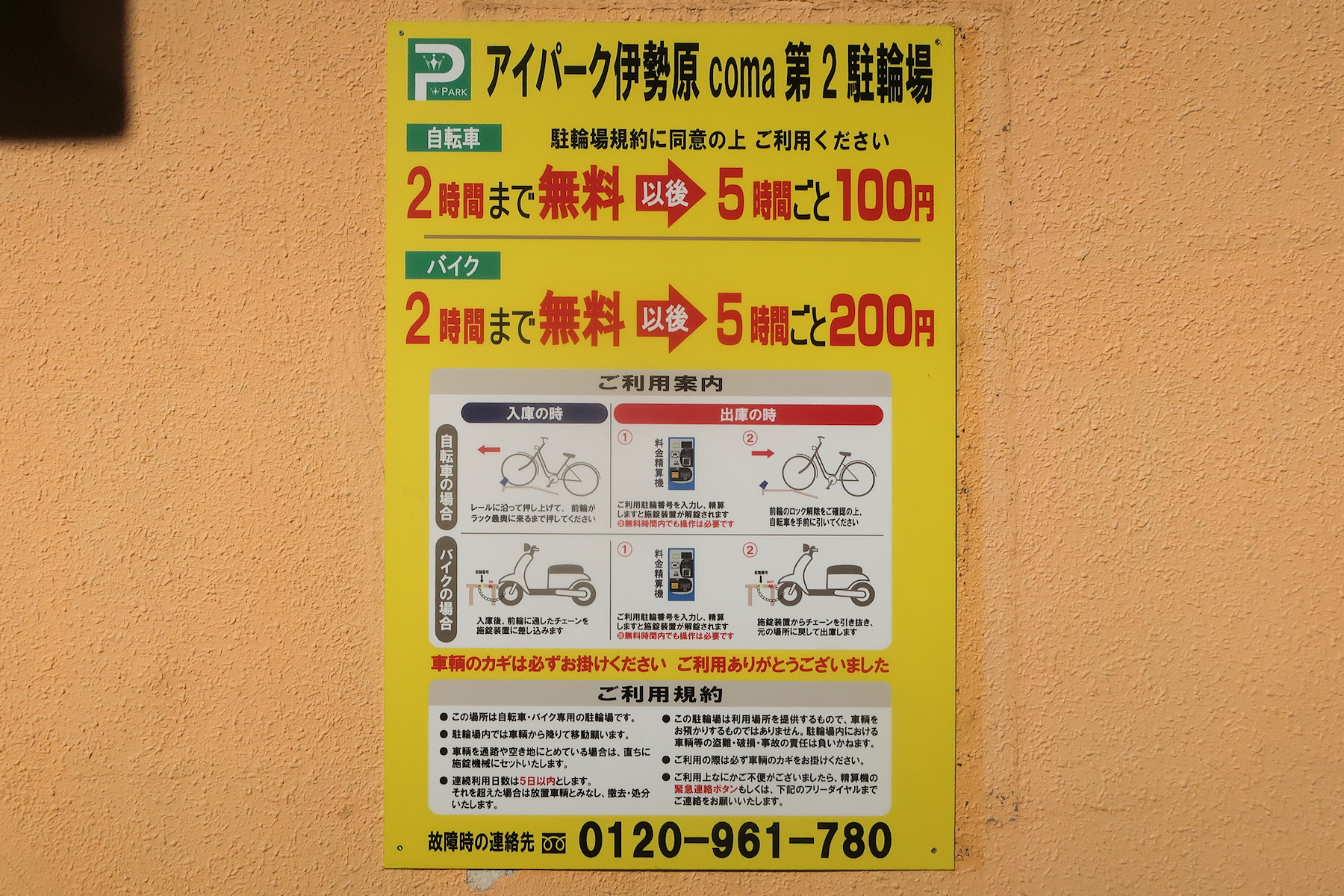 中でも東口のアイパーク伊勢原coma第2駐輪場は、2時間まで無料で停められます。
