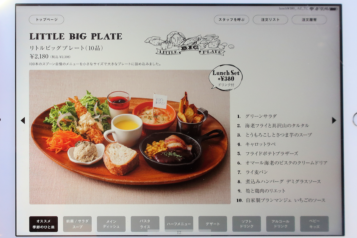 リトルビッグプレート(10品)2,180円に、ランチセットのドリンク付380円。