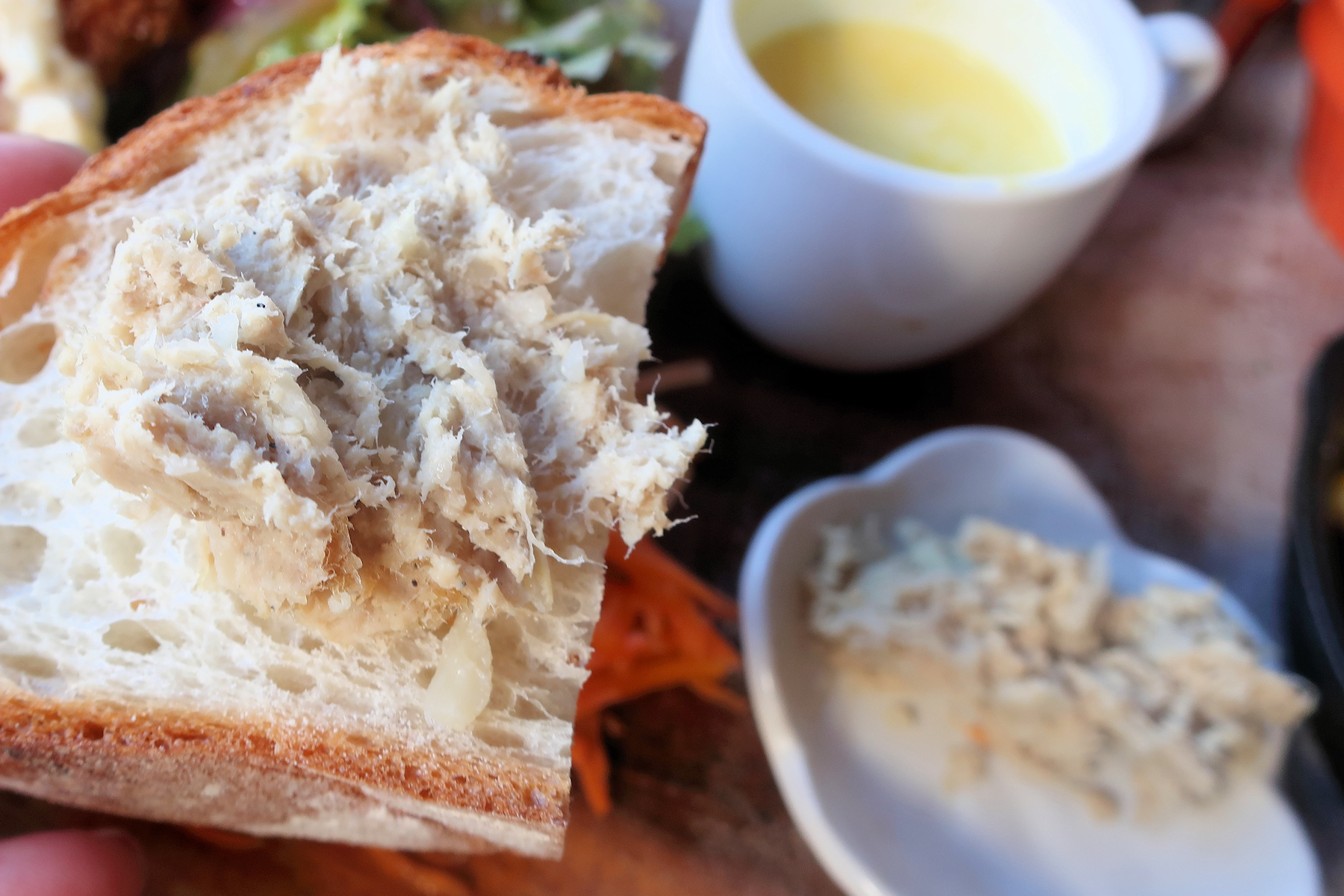 もちろんこのまま食べても美味しいだろうけど、近くにあったパンに乗せて頂きます。