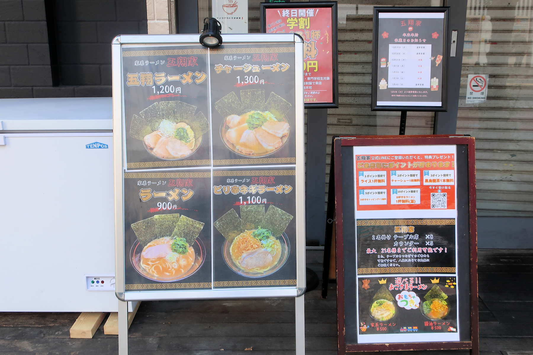 ラーメン900円、五翔ラーメン1,300円と味(たれ)は醤油のみ。