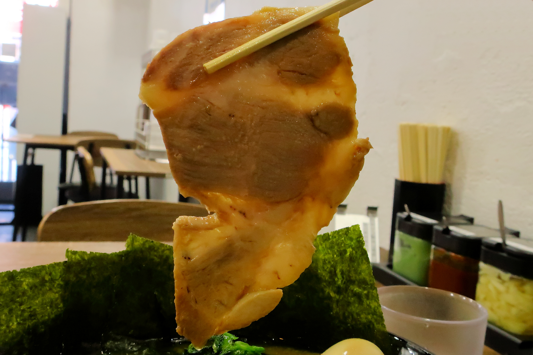 赤身と脂身の配分が絶妙で、スープとの相性も程よく、とっても美味しい。