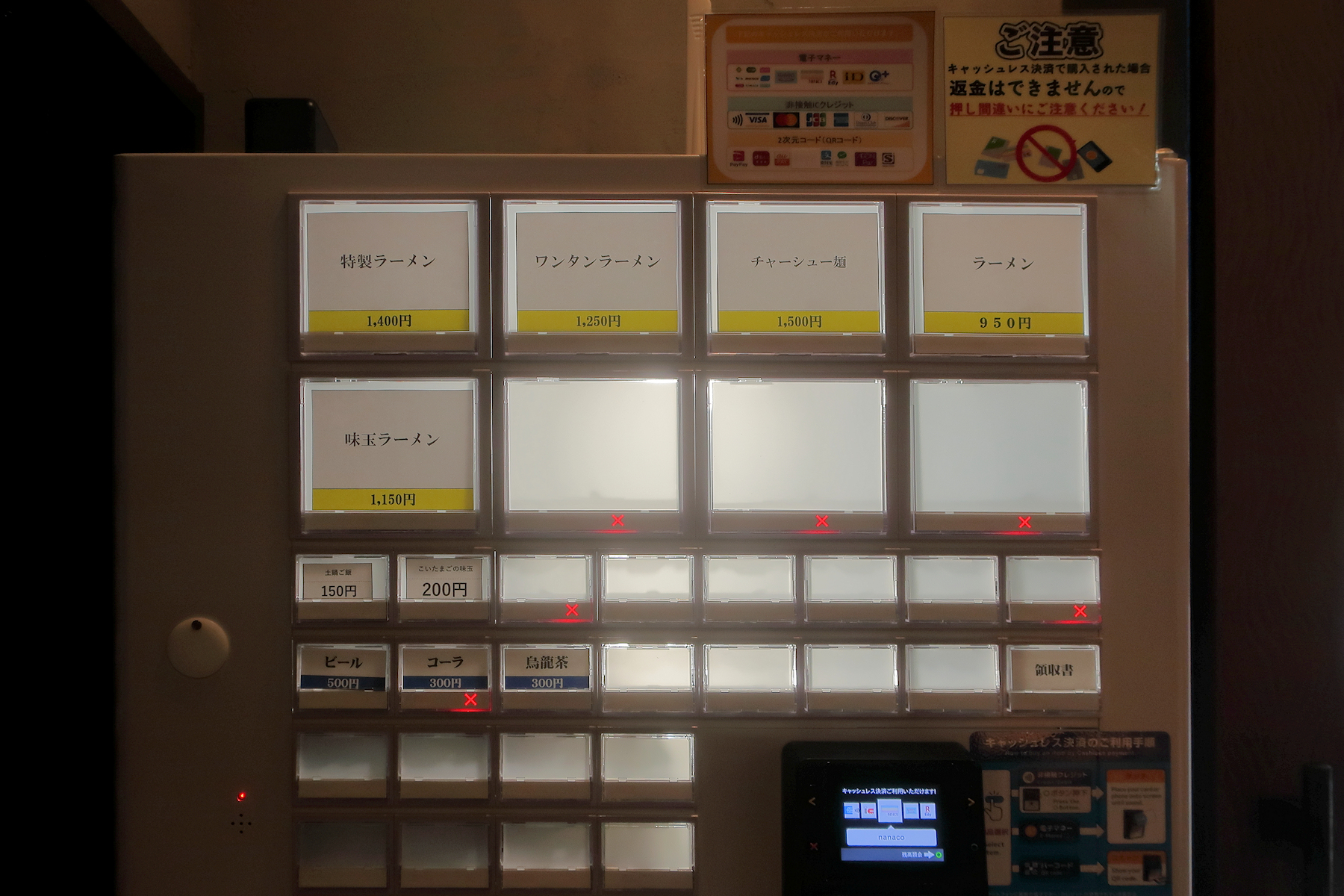 店内に入り、左壁に設置されている券売機で食券を購入します。
