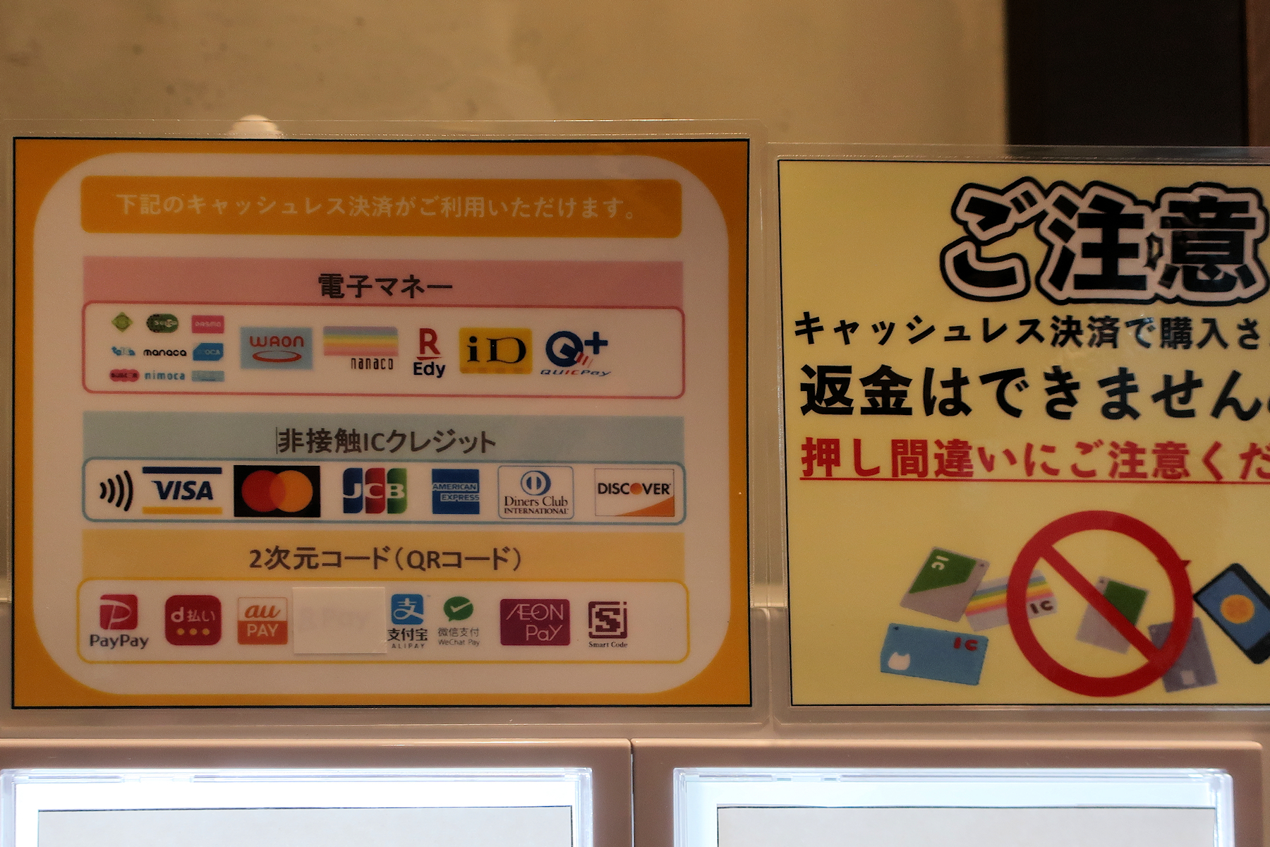 非接触ICクレジットはVISA、マスターカード、JCB、アメリカンエクスプレス、ダイナースクラブ、ディスカバーカード。