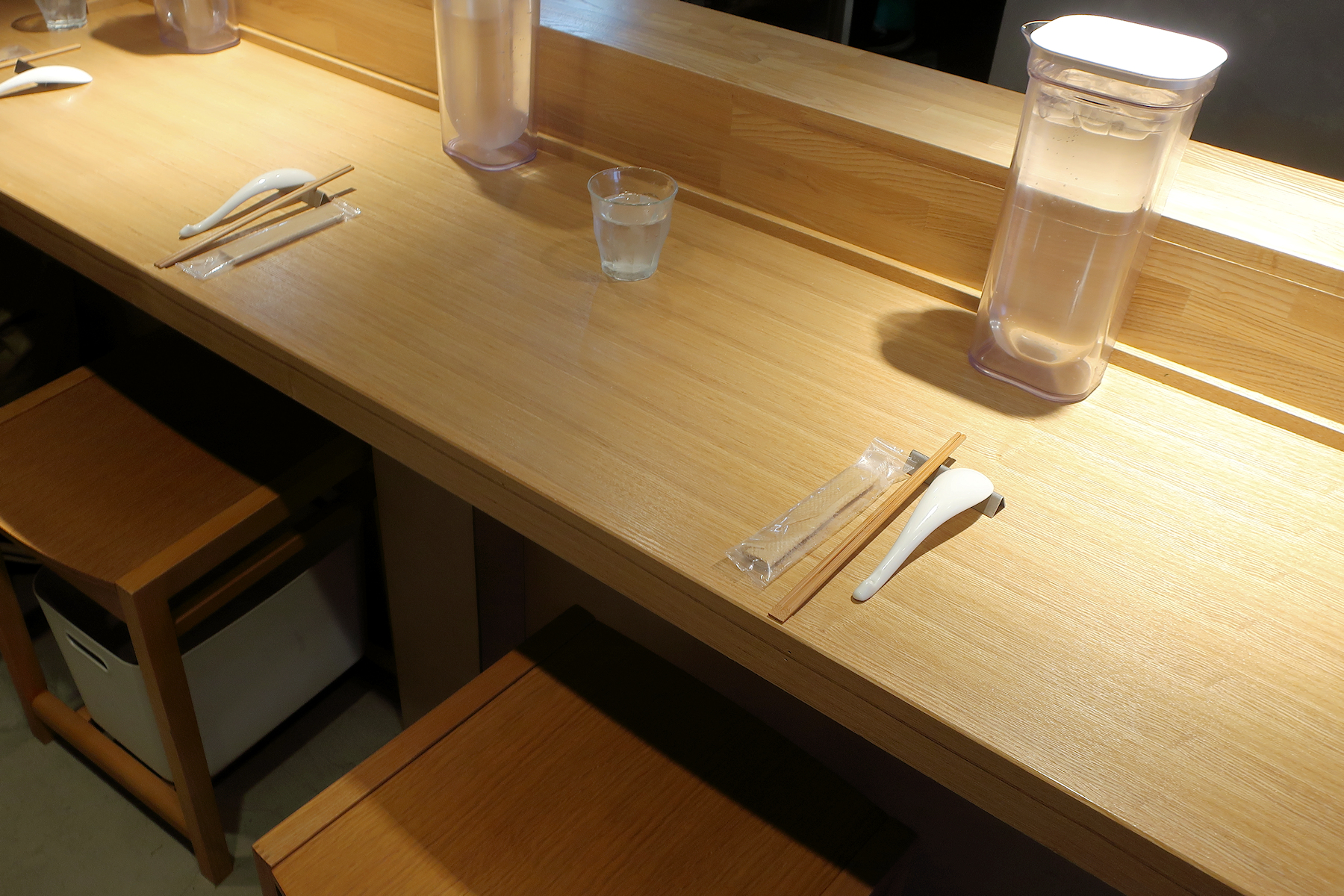 しかも真っ正面、、ラーメンが提供されたら、箸とレンゲを箸置きから落とさずに移動させる自信がありません。
