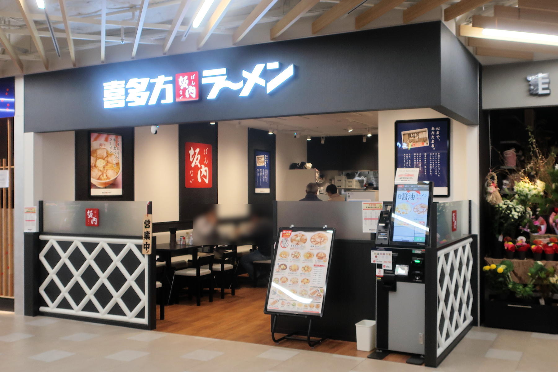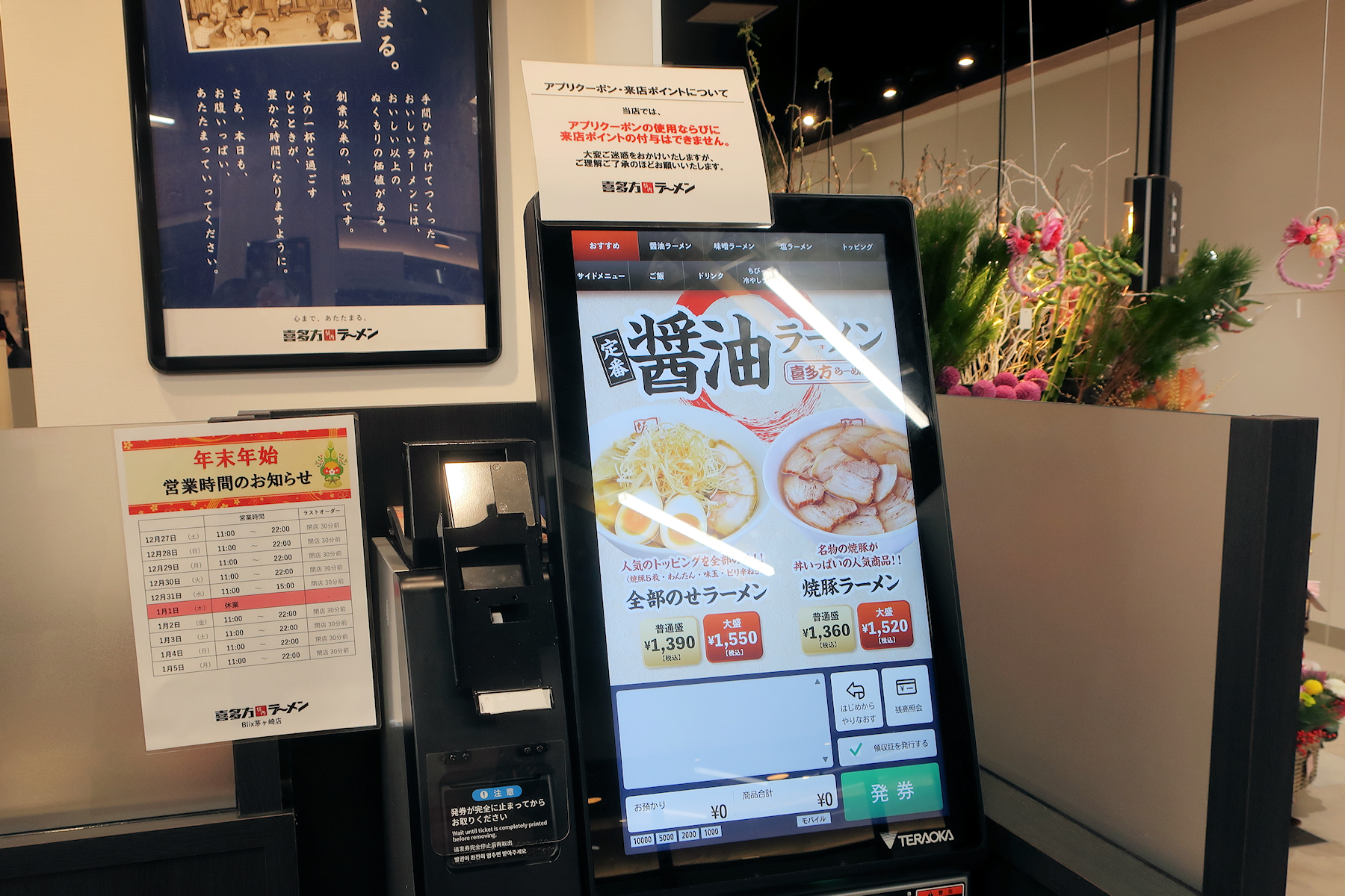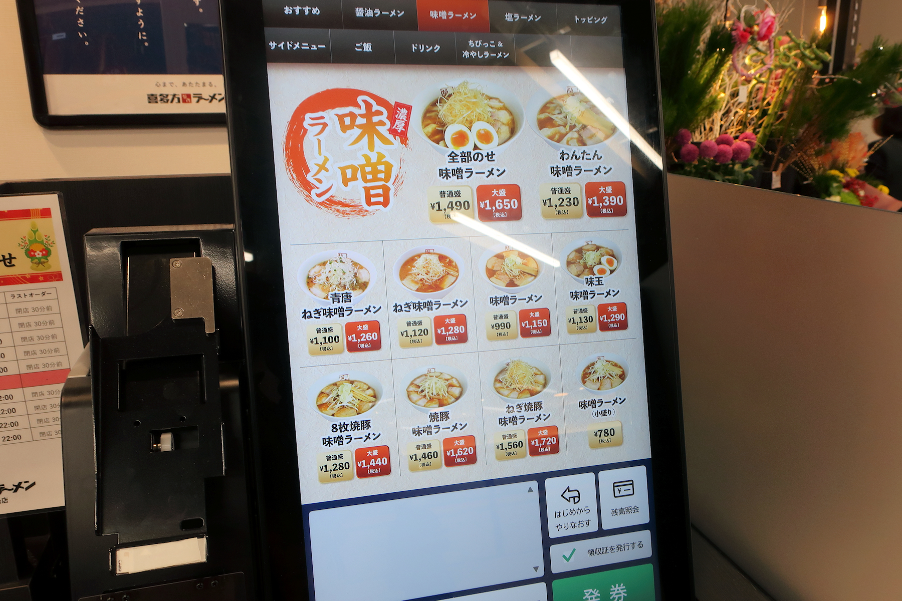 券売機は喜多方ラーメン坂内スタンダードのタッチパネル式券売機。