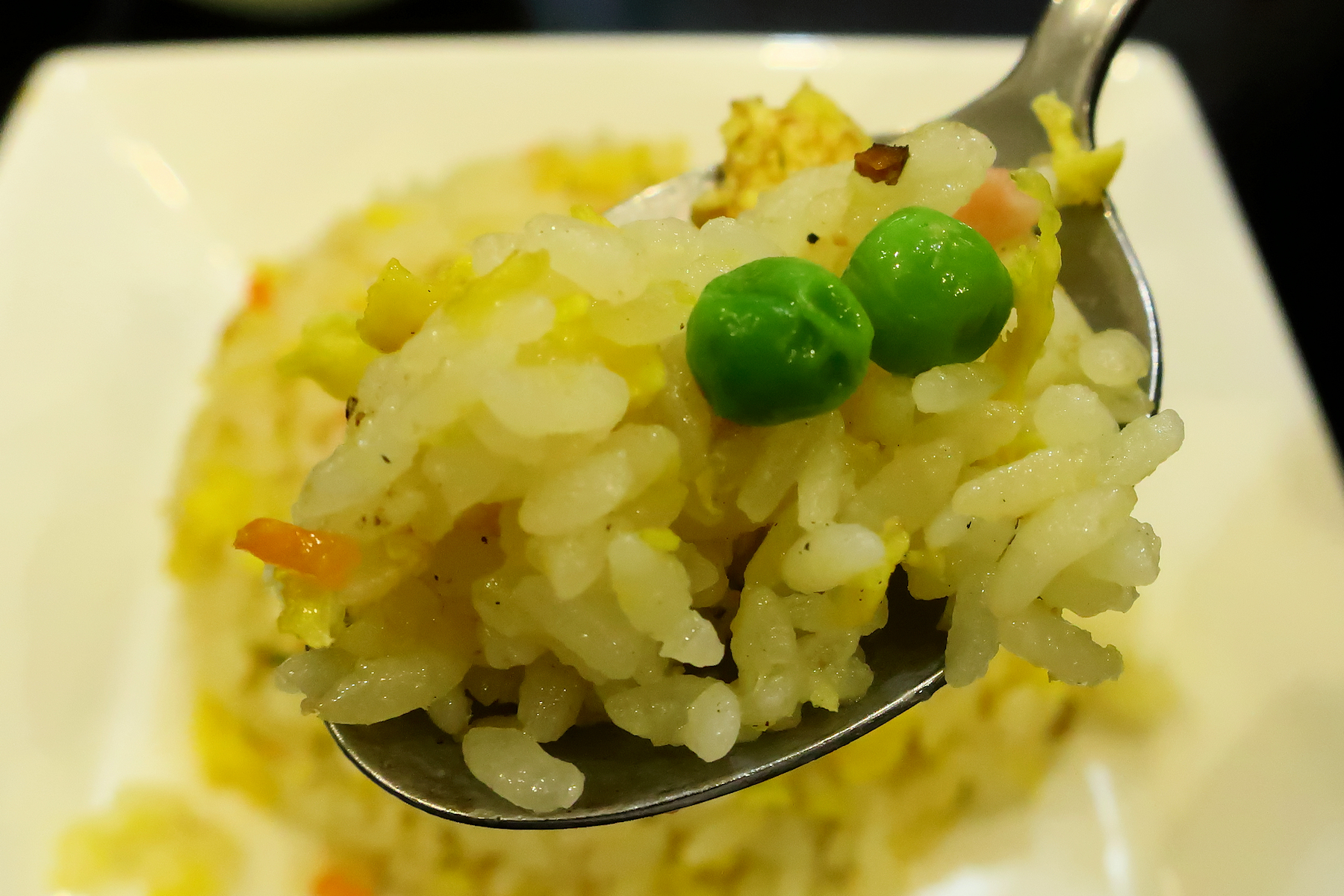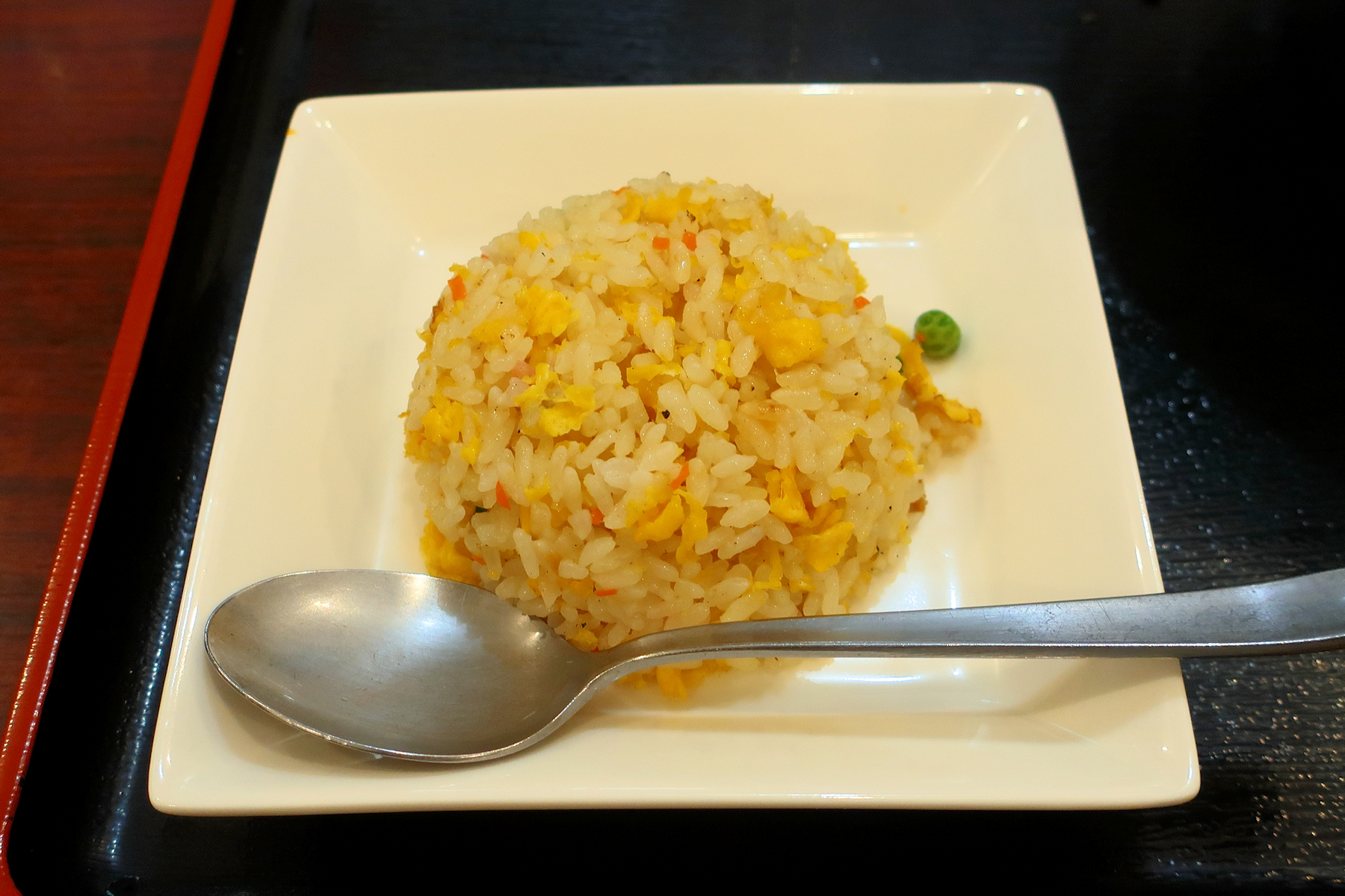具材が少なめのしっとり仕上げ、炒飯としてはちょっと寂しいけど、半チャーハンなので満足。