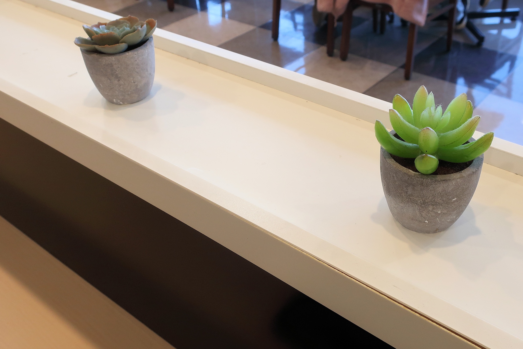 自然光が入ってくる席は、先客が座っているか、空いていてもお冷やのコップが置かれています。