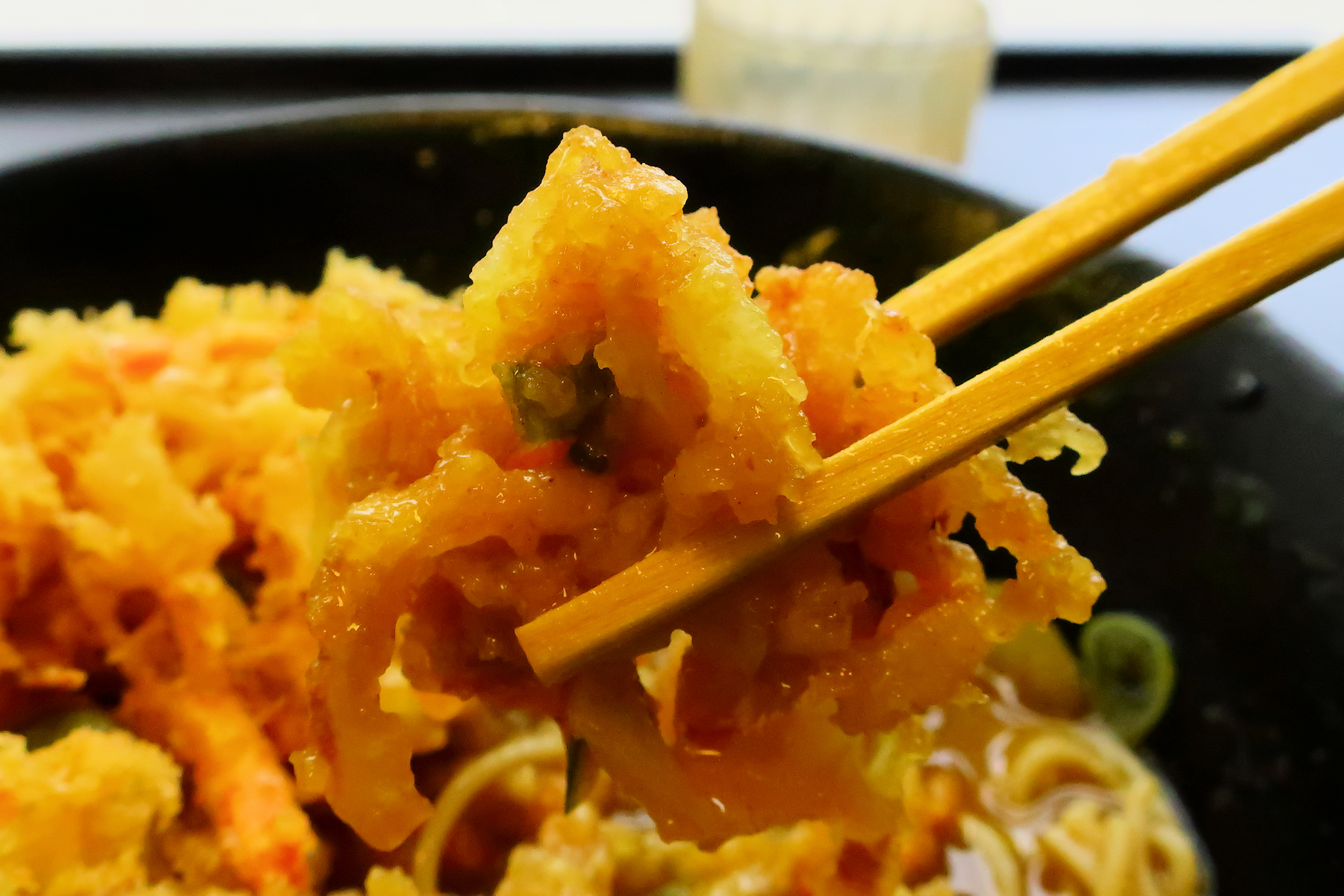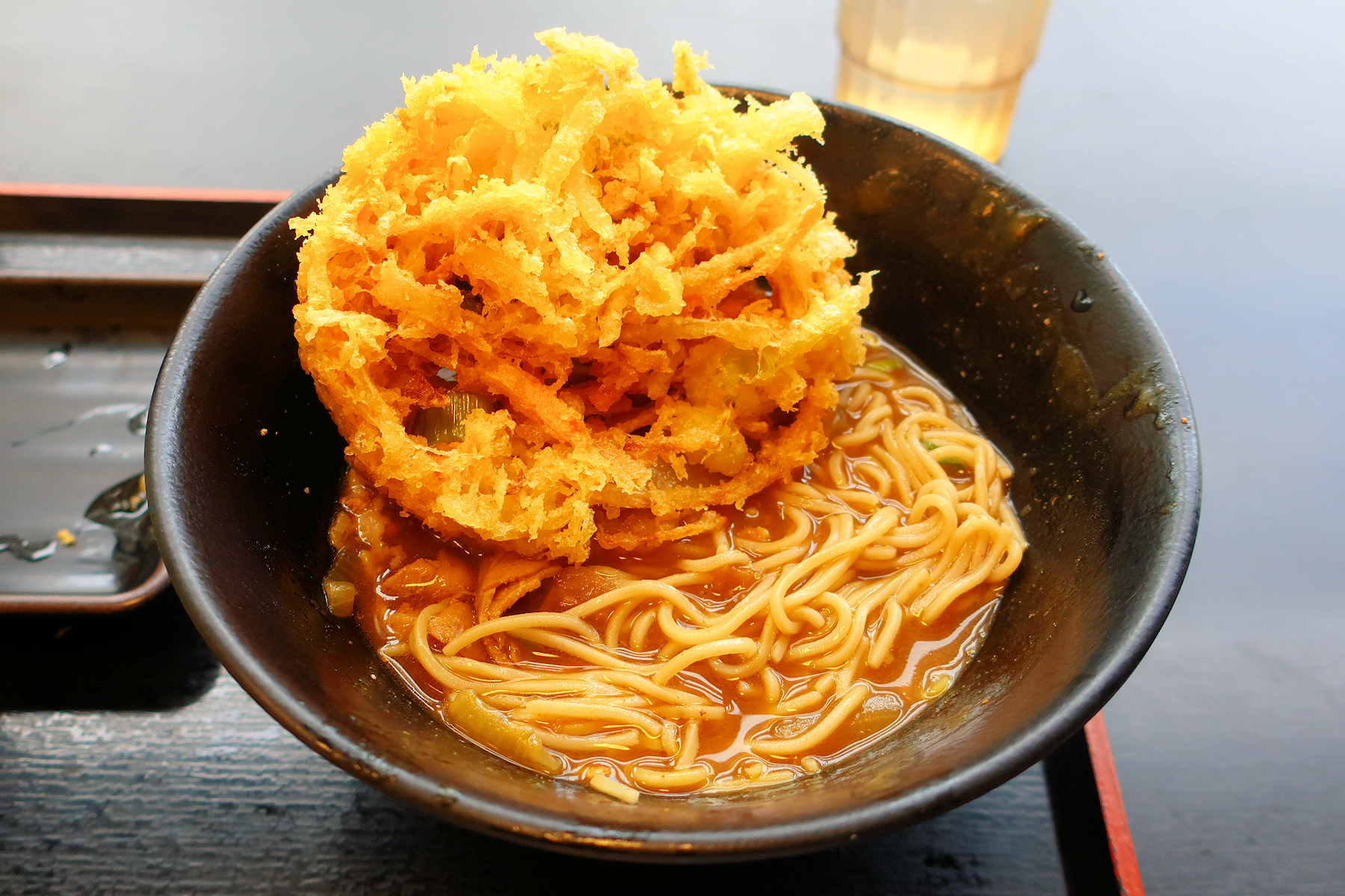 お蕎麦を半分ほど食べたら、かき揚げをトッピング。